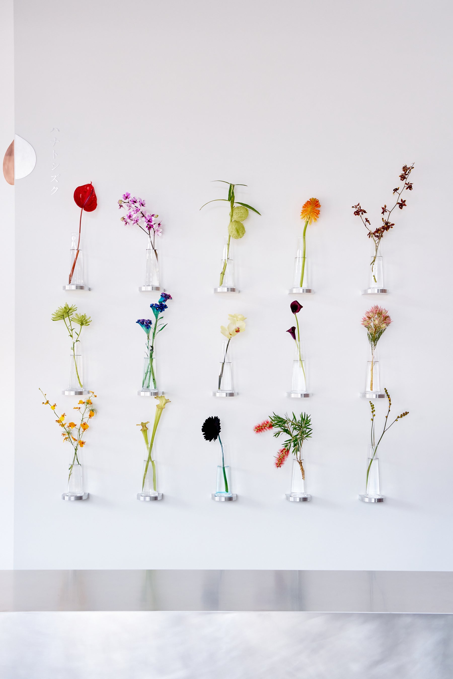 これまでフラワーデザイナーとしてBtoBを中心に活躍してきた林聡子が、より多くの方が普段の生活の中で日常的に花を楽しんでいただけるよう、手軽に楽しめる一輪挿し用の花を提供することを目的に展開するお店です。また店舗ではオーナー林がこれまで出会った日本ワインを中心に、花や植物そのものだけでなく多数のボタニカルプロダクトを用意。多くのボタニカルプロダクトが植物のエッセンシャルな雫から生まれることから、店名を「ハナトシズク」と名付けました。