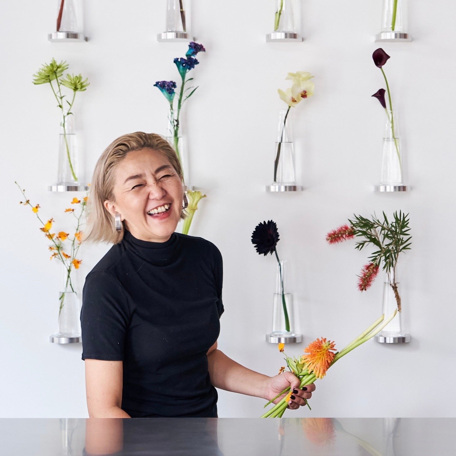 株式会社ジュンアシダ企画部にて、コレクションに携わるなかでフラワーデザイナーと出会い、花の演出に興味を持ち1997年渡英。エルコーレ・モローニ氏に師事。翌年、氏がデザインディレクターを務める米アカデミー賞アフターパーティーのアシスタントに抜擢されキャリアをスタート。2000年にフラワーデザインを行う法人として有限会社ミニ・エ・マキシを創業。
