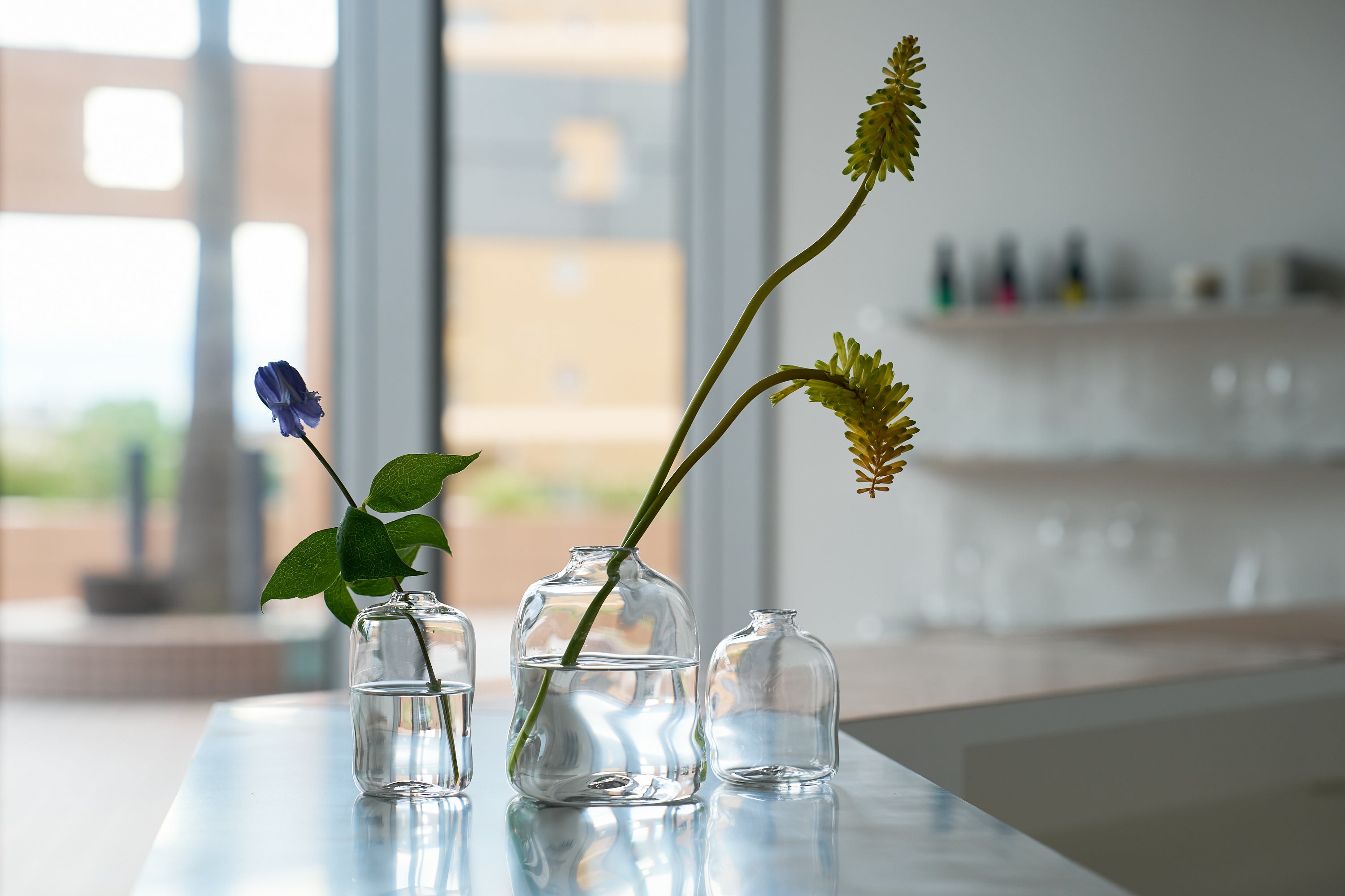 気軽に一輪で楽しめる花をはじめ、すこし珍しい鉢植えなどの観葉植物を展開。また花と共にインテリアを美しく彩る花器は、ベルギーのガラス製フラワーベースブランド「Henry Dean(ヘンリーディーン)」を中心に、近年注目を集める吹きガラス作家の大家具子(Instagram:@goocoglass)による一点ものの花器など、シンプルでありながら個性的なセレクトをしています。