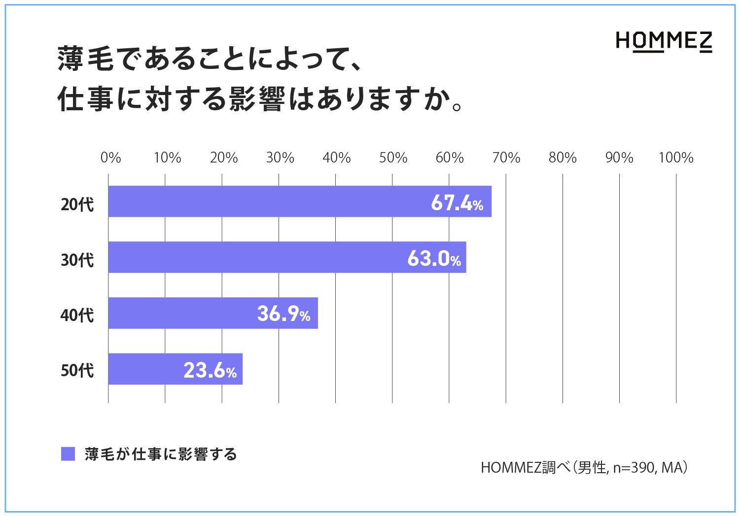 薄毛がビジネスでもハレーションを起こす!?仕事でネガティブな影響46.4%と回答。特に20~30代で顕著な結果に(20代67.4%、30代63.0%)