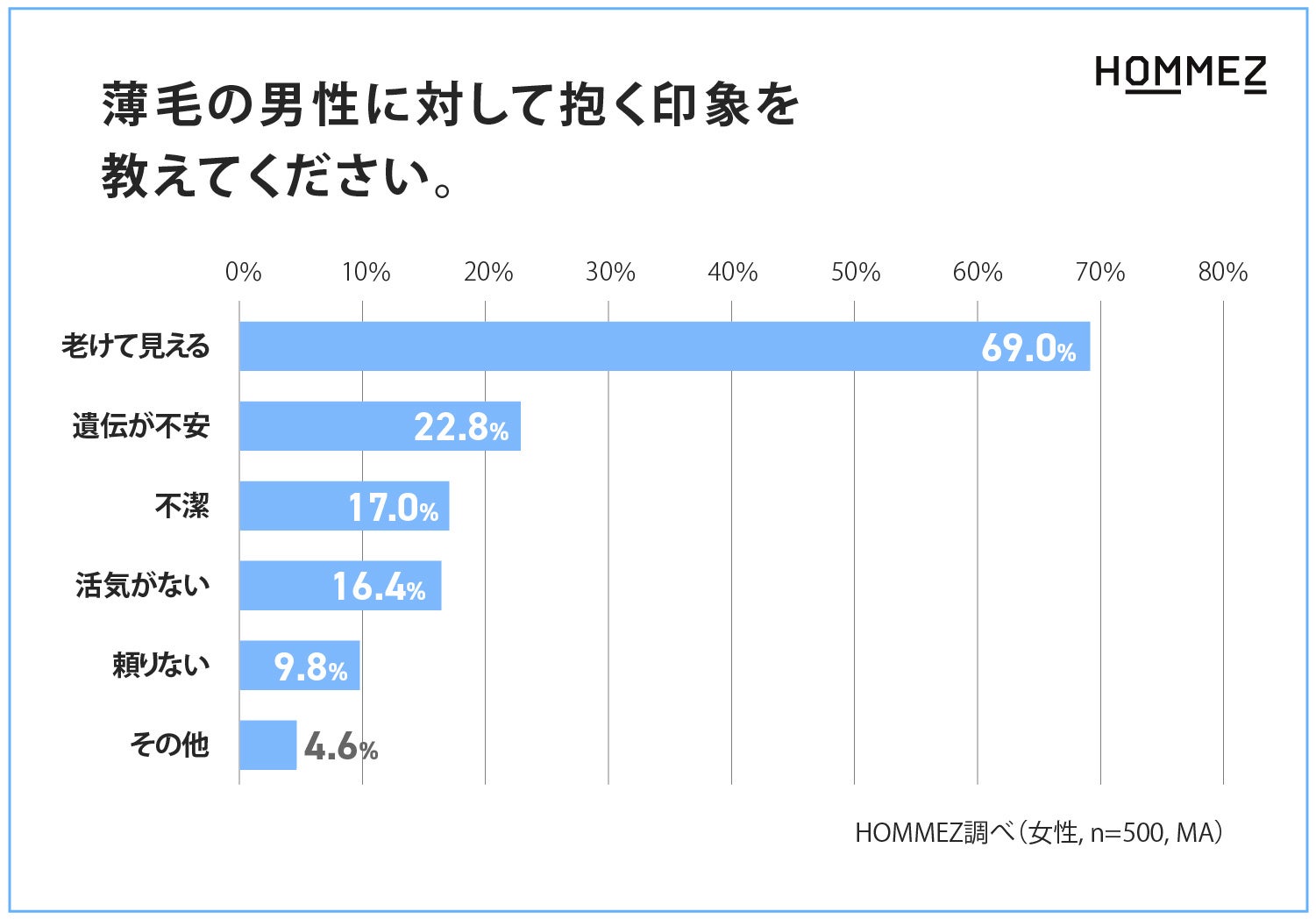 女性からみた薄毛男性の印象、「老けて見える」がダントツのトップで69.0%
