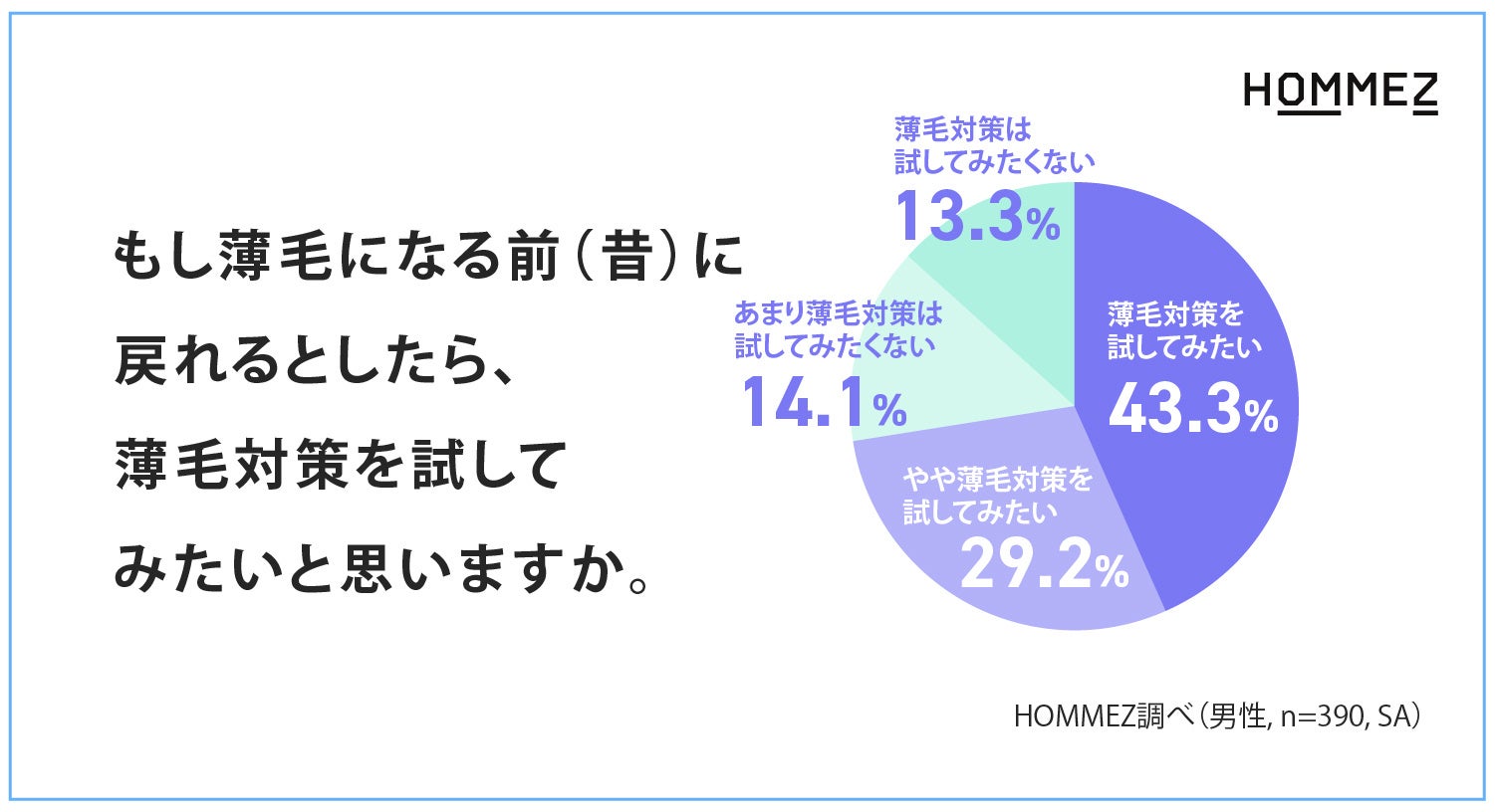 Q. もし薄毛になる前(昔)に戻れるとしたら、薄毛対策を試してみたいと思いますか。(男性, n=390, SA)