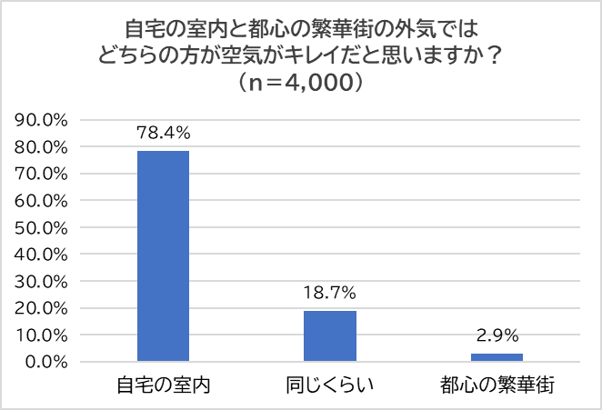 ・ 「都心の繫華街の外気より自宅の室内の方が空気がキレイだと思う」と回答8割