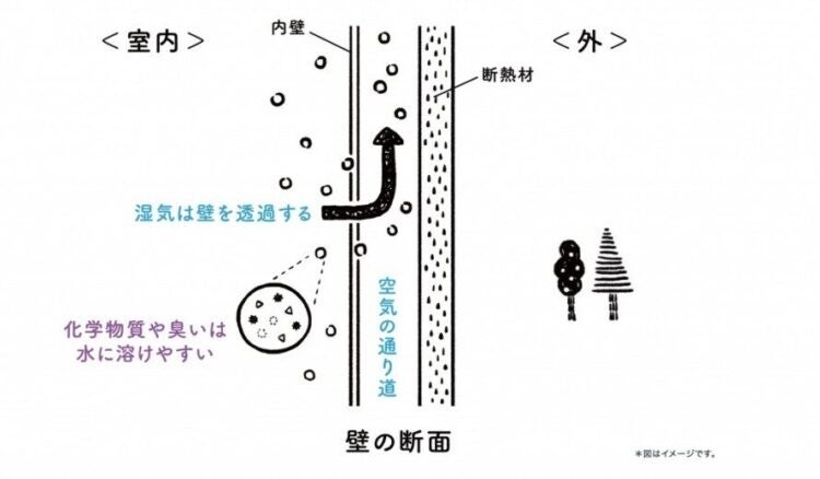 3.内壁が湿気を通すだけでなく、においや化学物質も室内から室外へと排出