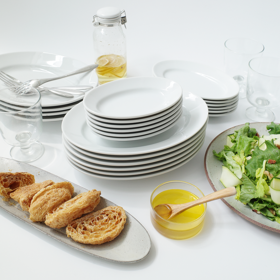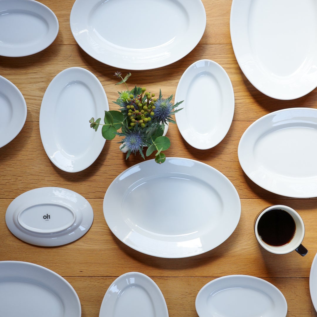 実は、探すとなかなか売っていないシンプルなオーバルプレート。サイズはスイーツから大皿料理までカバーできる全5サイズ。丸皿よりスペース効率が良いので、収納も場所取らず。
