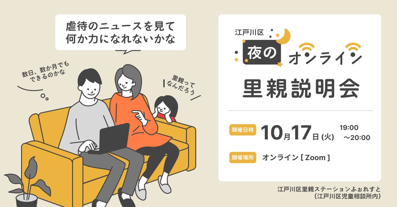 里親に興味がある方向け。江戸川区初のオンライン説明会(夜開催)の参加者を募集します。