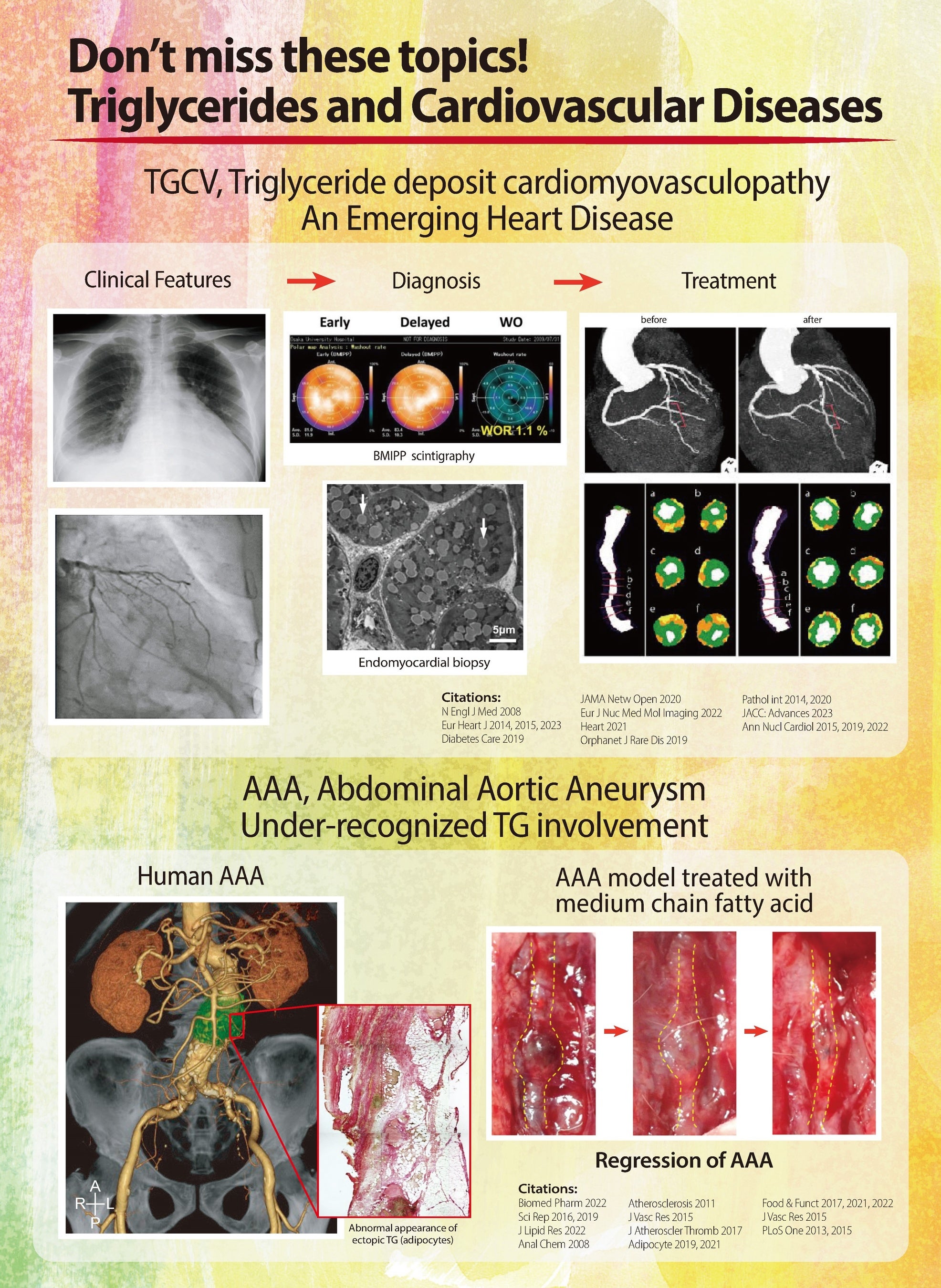 中性脂肪とお聞きになりますと「生活習慣病」「食べ過ぎ・運動不足」などをイメージされる方が多いと思われます。中性脂肪は、ともすれば「悪者」と見なされています。しかしながら、中性脂肪は生体の重要なエネルギー源です。我々はこの中性脂肪が、上手く細胞で利用できずに心臓移植が必要となるほどの重症心不全を来す新しい心臓難病、「中性脂肪蓄積心筋血管症(TGCV)」を見出し、診断法、治療法の開発を行って参りました。