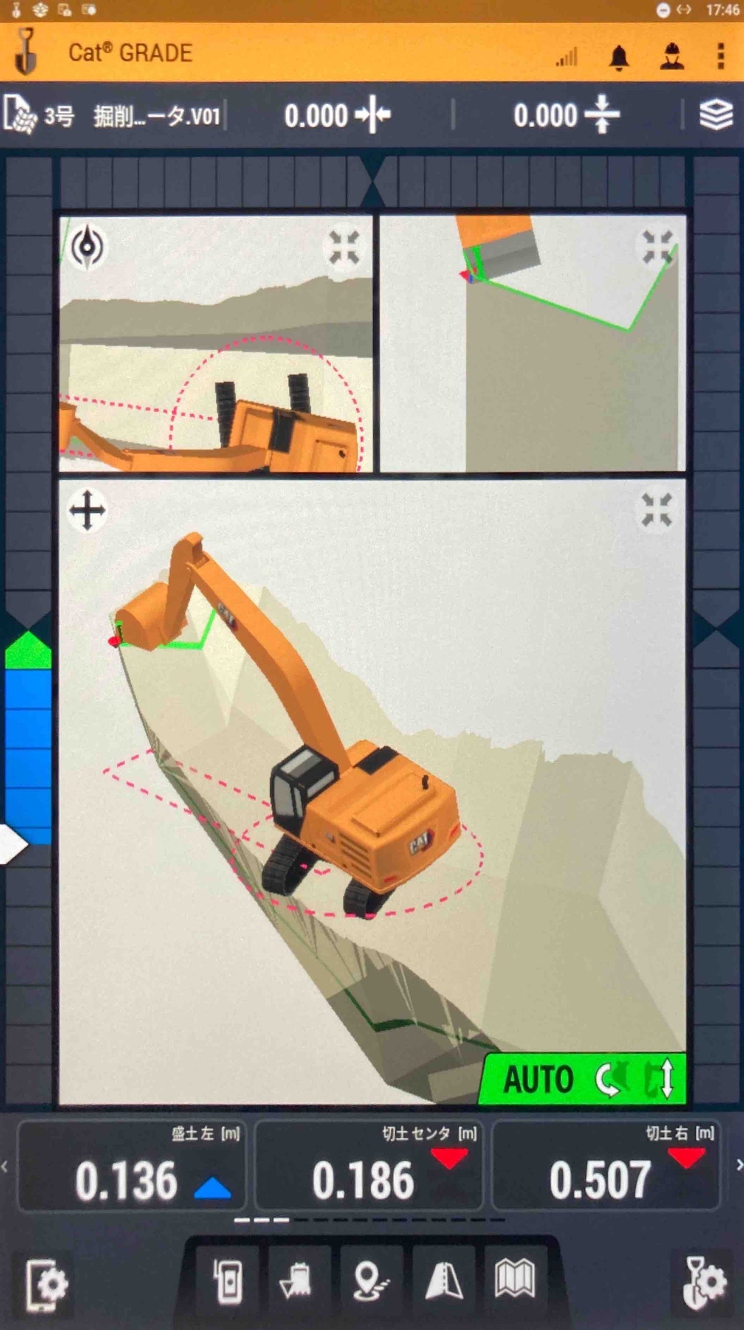 また、制作したBIM/CIMモデルはファイル変換しICT建機へ取り込むことで、無丁張施工を可能とし、数百m、数kmもの施工区間に延々と丁張を掛けていく作業が不要になりますので、大幅な時間短縮が期待できます。