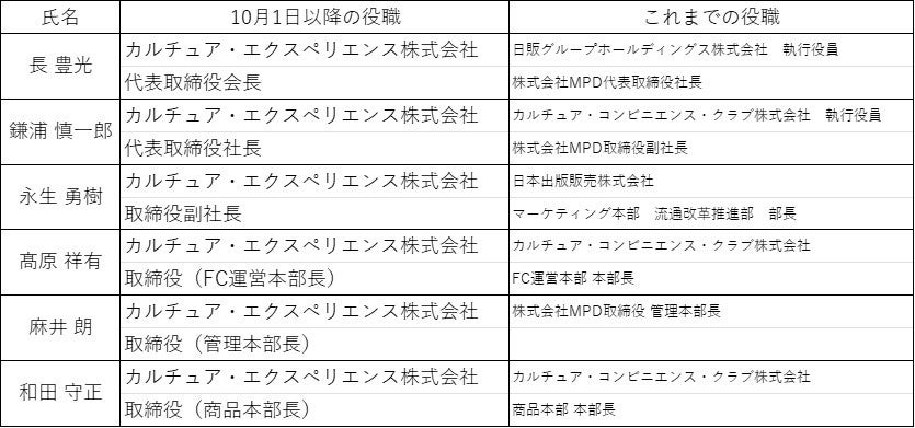 ※なお、長は日販グループホールディングス株式会社 執行役員、鎌浦はカルチュア・コンビニエンス・クラブ株式会社 執行役員を10月1日以降も兼任いたします。