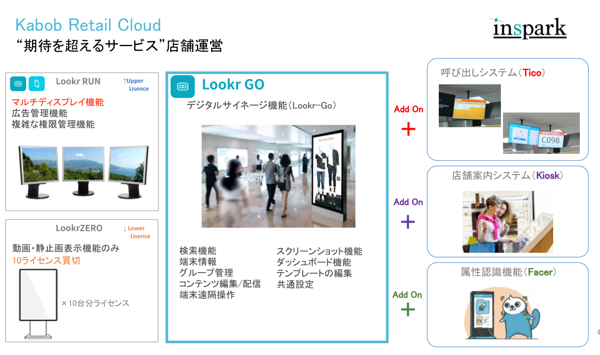 台湾発の企業「KABOB(ケバブ)」社のリテール販売のブランディングを高めるクラウドサービス「KABOB CLOUD(ケバブ クラウド)サービスの1つとして、「デジタルサイネージ」の遠隔操作、マルチディスプレイ機能、マルチプラットフォームの機能を担う「Lookr(ルッカー)」クラウド型デジタルサイネージ配信サービスが生まれました。
