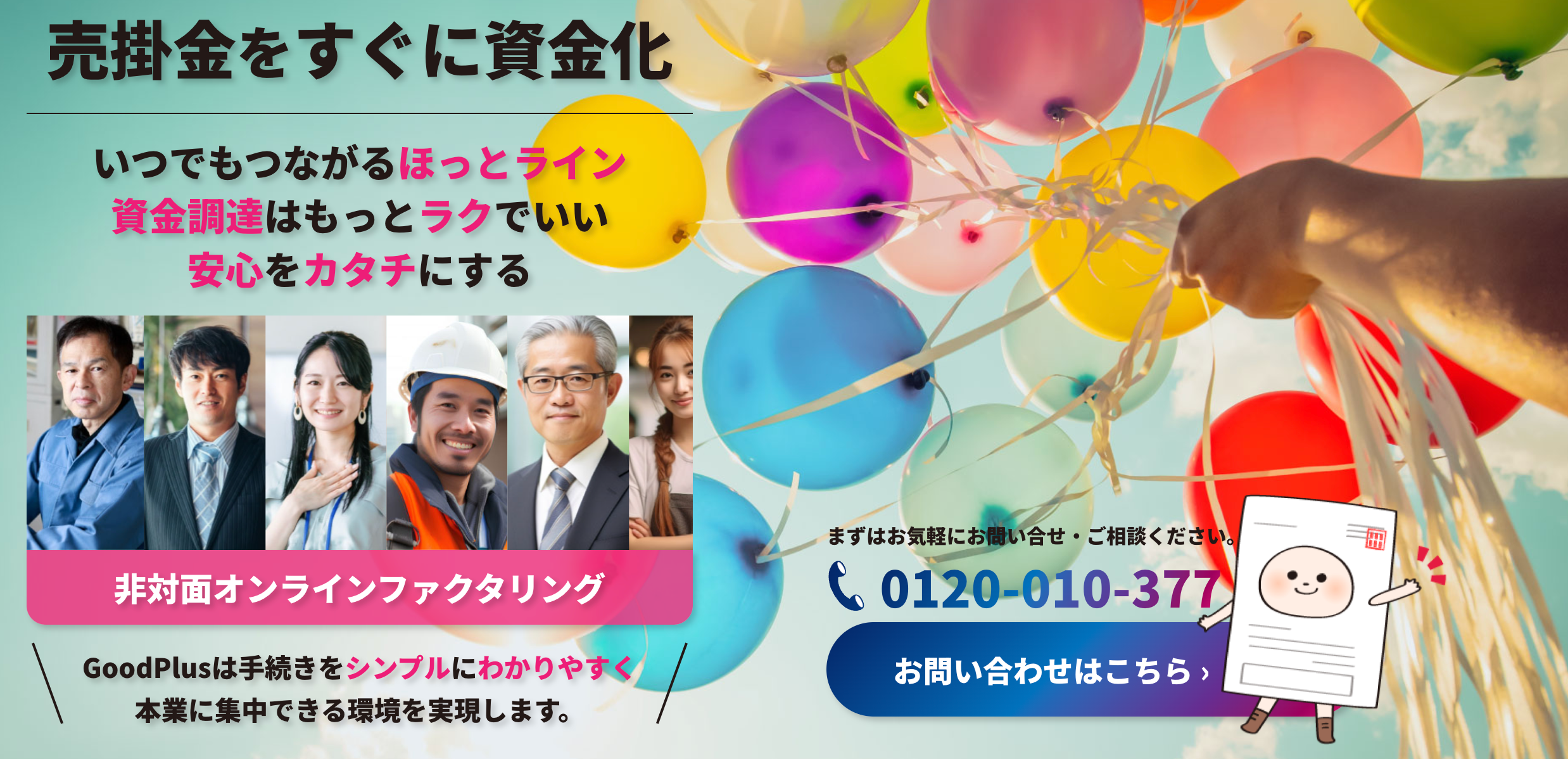 GoodPlus株式会社(https://goodplus-service.co.jp/)では資金繰りのファクタリングを活用すれば、悩みを解決できる可能性があることはもちろん、キャッシュフローを根本から改善するための様々なアドバイスもおこなっています。