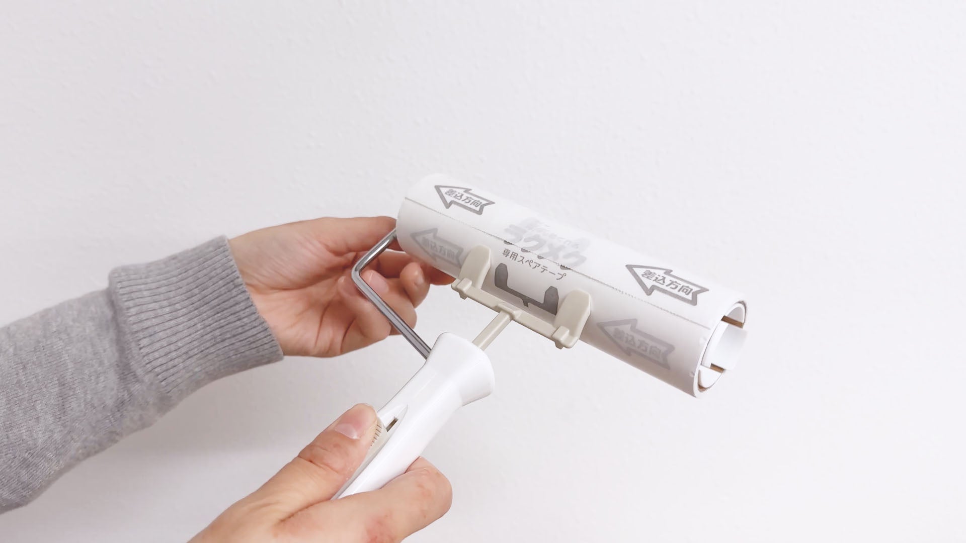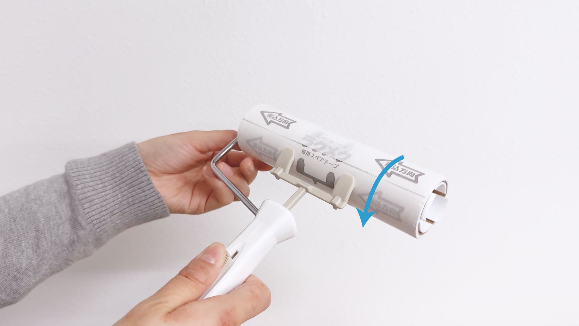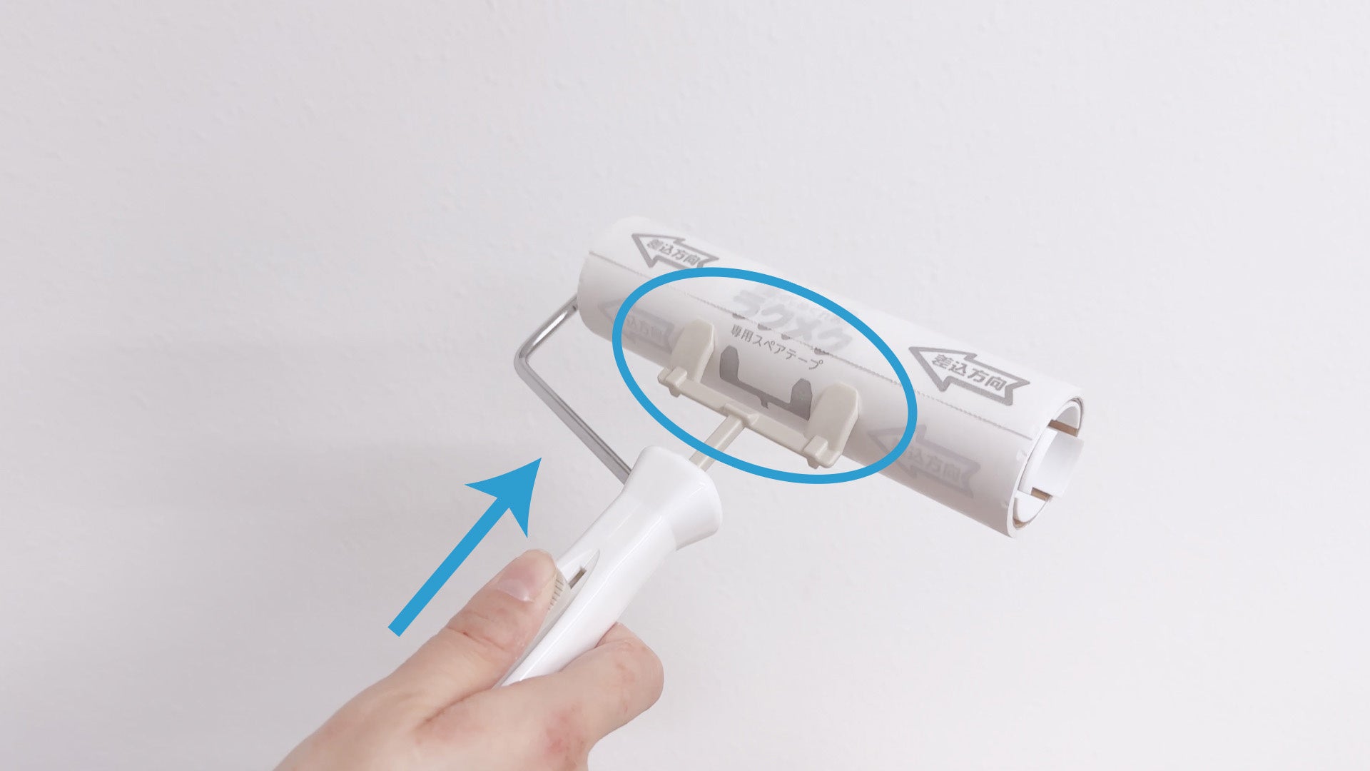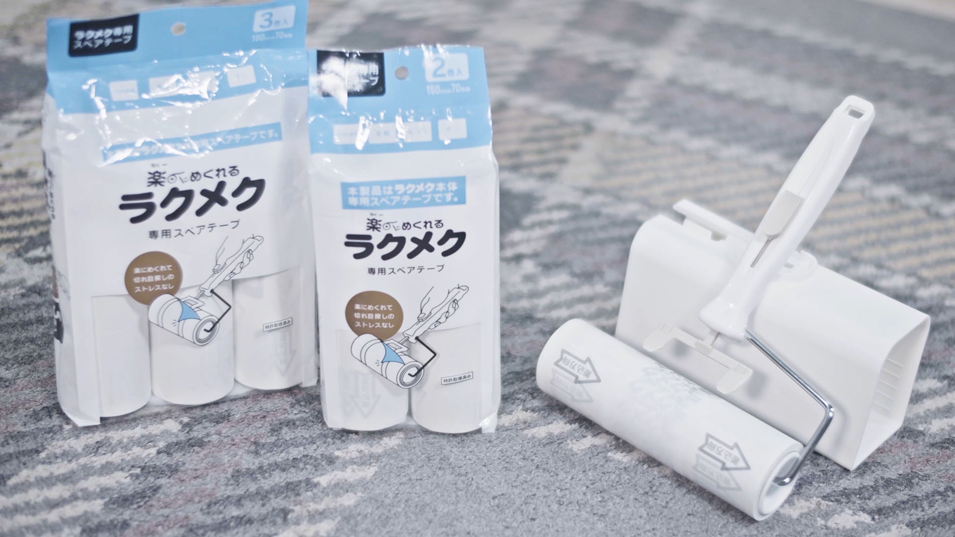 粘着クリーナー本体には、テープをめくりあげてくれるツメがついております。このツメを活かすため、ラクメク専用テープには、ツメの接地面に非粘着加工を施しており、極限までめくりやすくしております。他社製の粘着テープはご使用になれませんのでご注意ください。