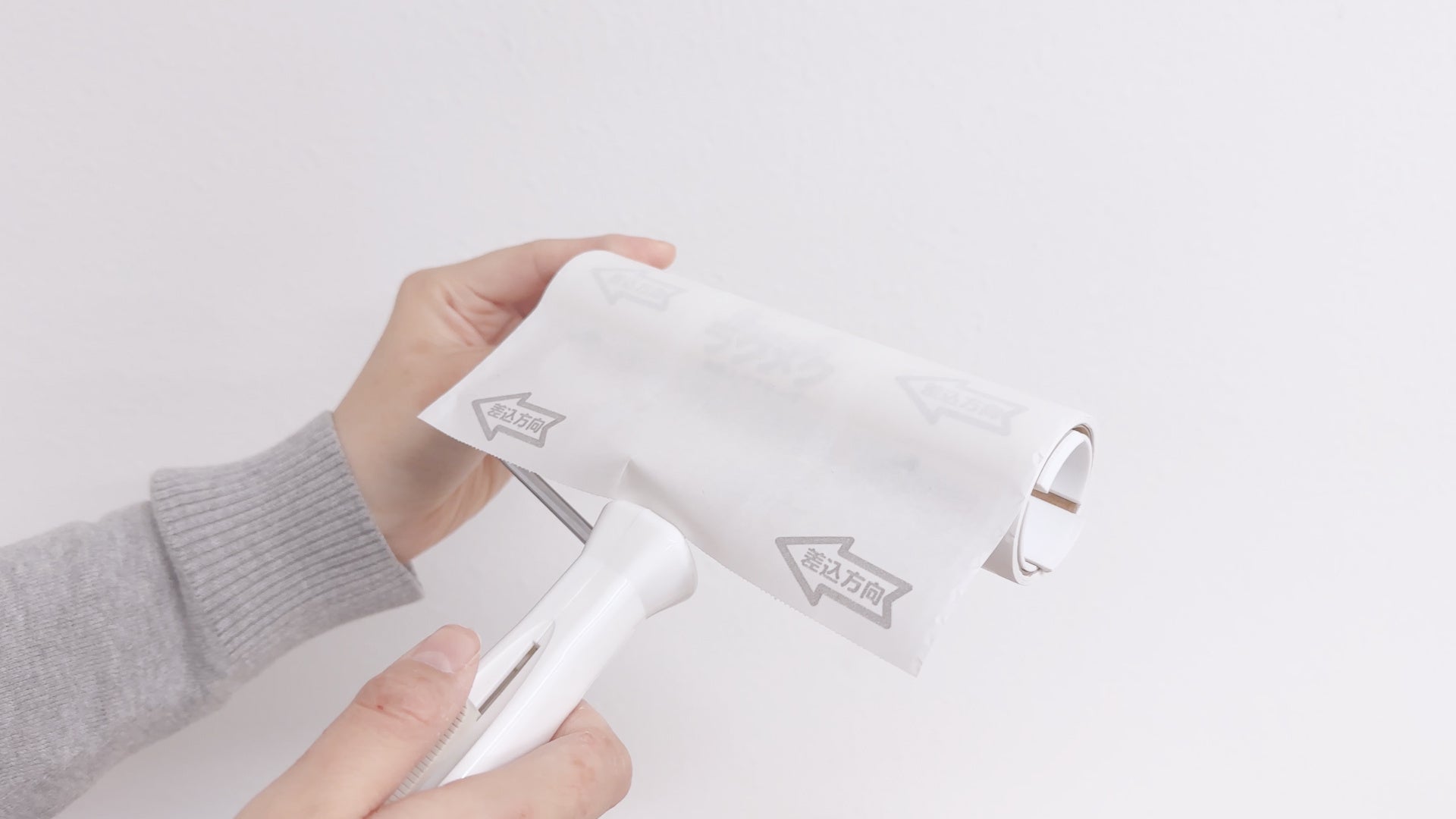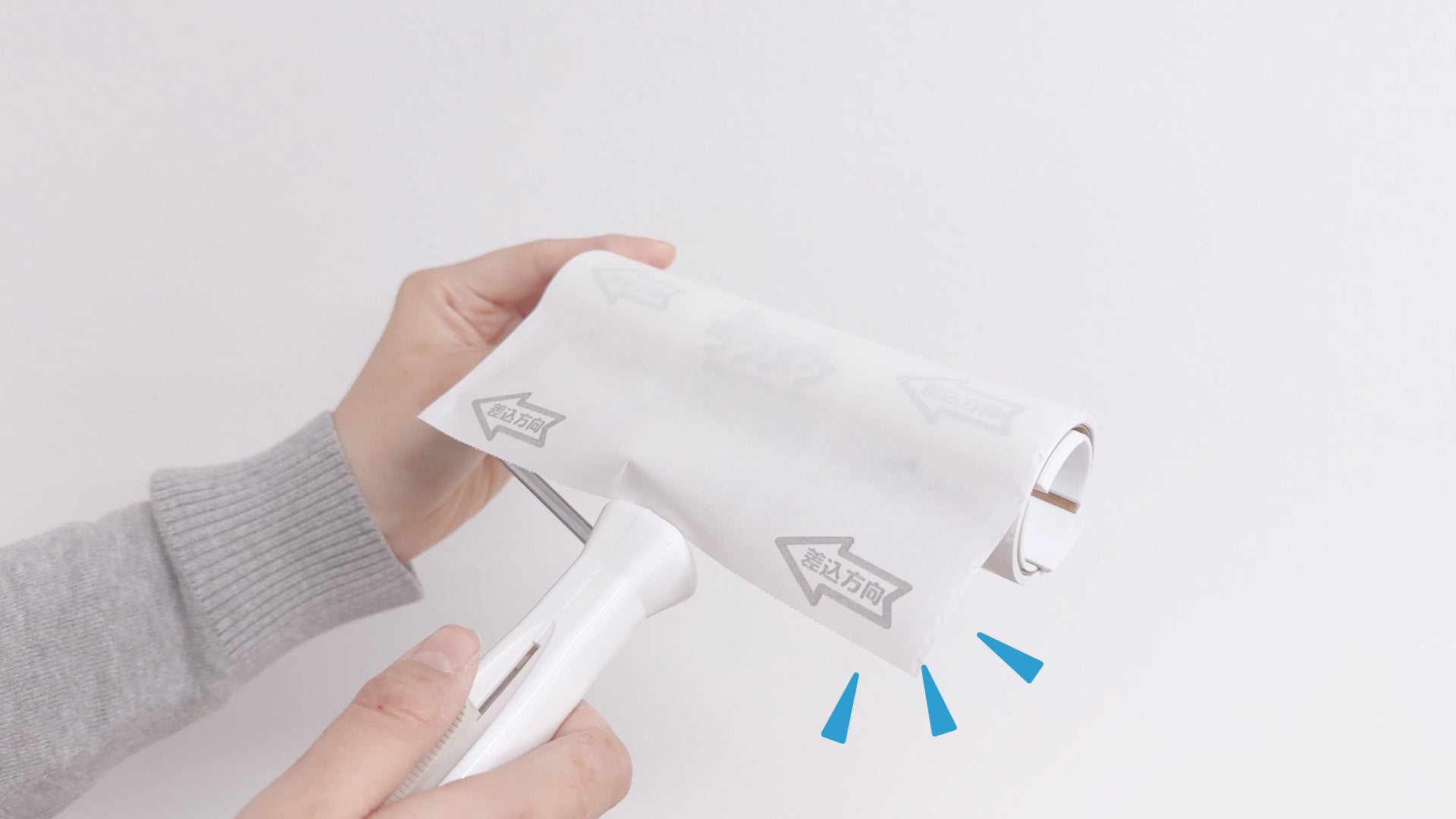従来の粘着クリーナーには、テープ側にめくり口がわかりやすくなる機能(スパイラルカットやめくり口にラインがはいっているもの)はありましたが、ラクメクはめくり口を探しやすくするのではなく、「探さなくて済むような設計」を実現しました。