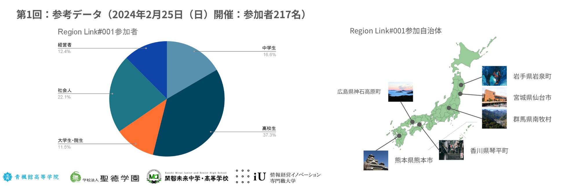「Region Link」は、地域の課題を解決し、地方の発展に貢献するため、自治体や企業、教育機関、学生が共創するプロジェクトです。その目的は、地方と人々をつなげる「関係人口」を創出し、日本各地の課題解決に新しい視点とアプローチを提供することです。初開催となる2024年2月には、岩手県岩泉町、宮城県仙台市、熊本県熊本市、広島県神石高原町、群馬県南牧村、香川県琴平町といった自治体が参加し、地域の未来を共に考えました。第2回となる今回では、さらに多くの自治体と参加者が集まり、新たな出会いと挑戦が期待されます。