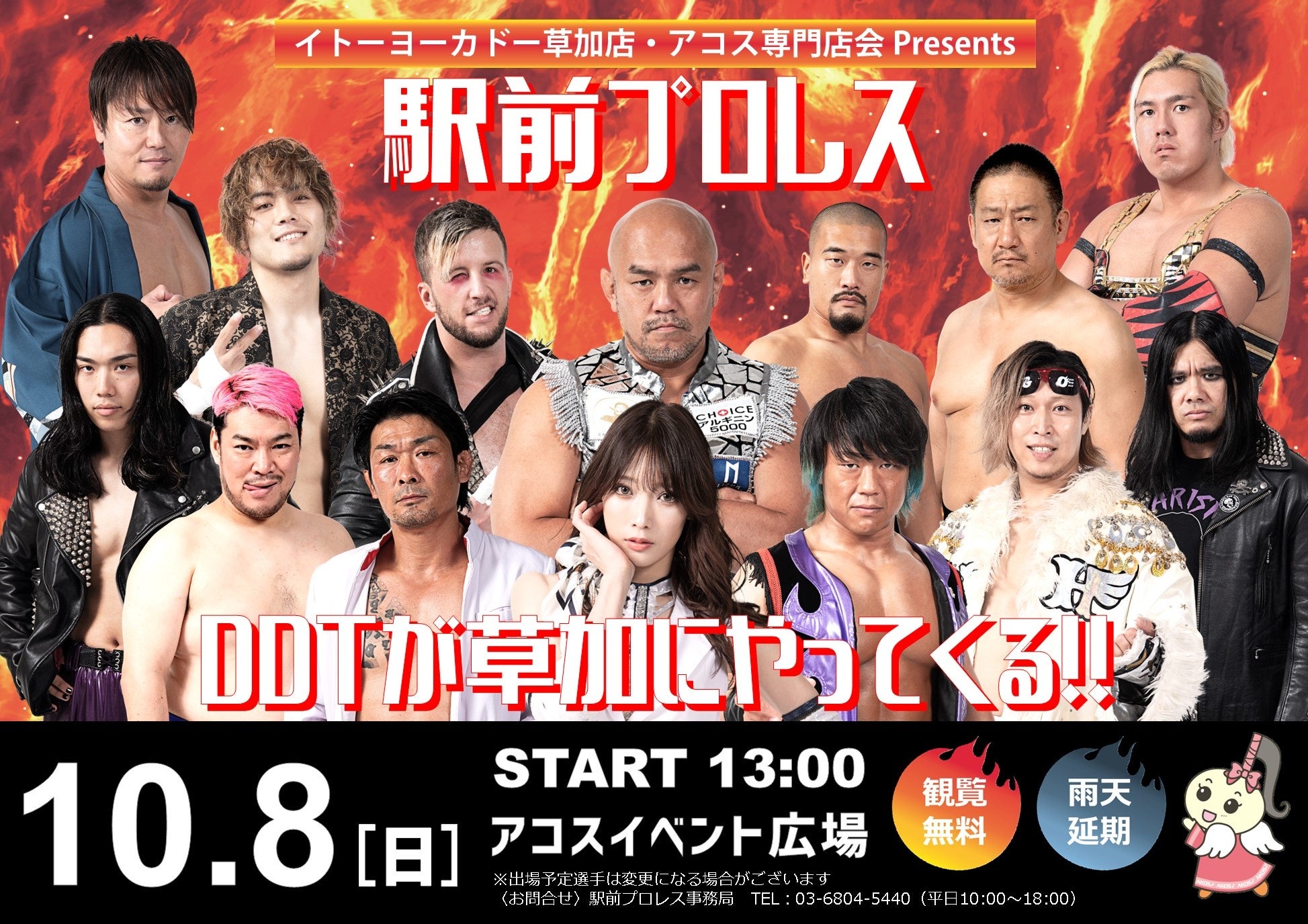 <2023年10月8日(日)13:00〜>草加アコス南館が駅前プロレスを初開催‼〜DDTプロレスリングが草加にやってくる!〜