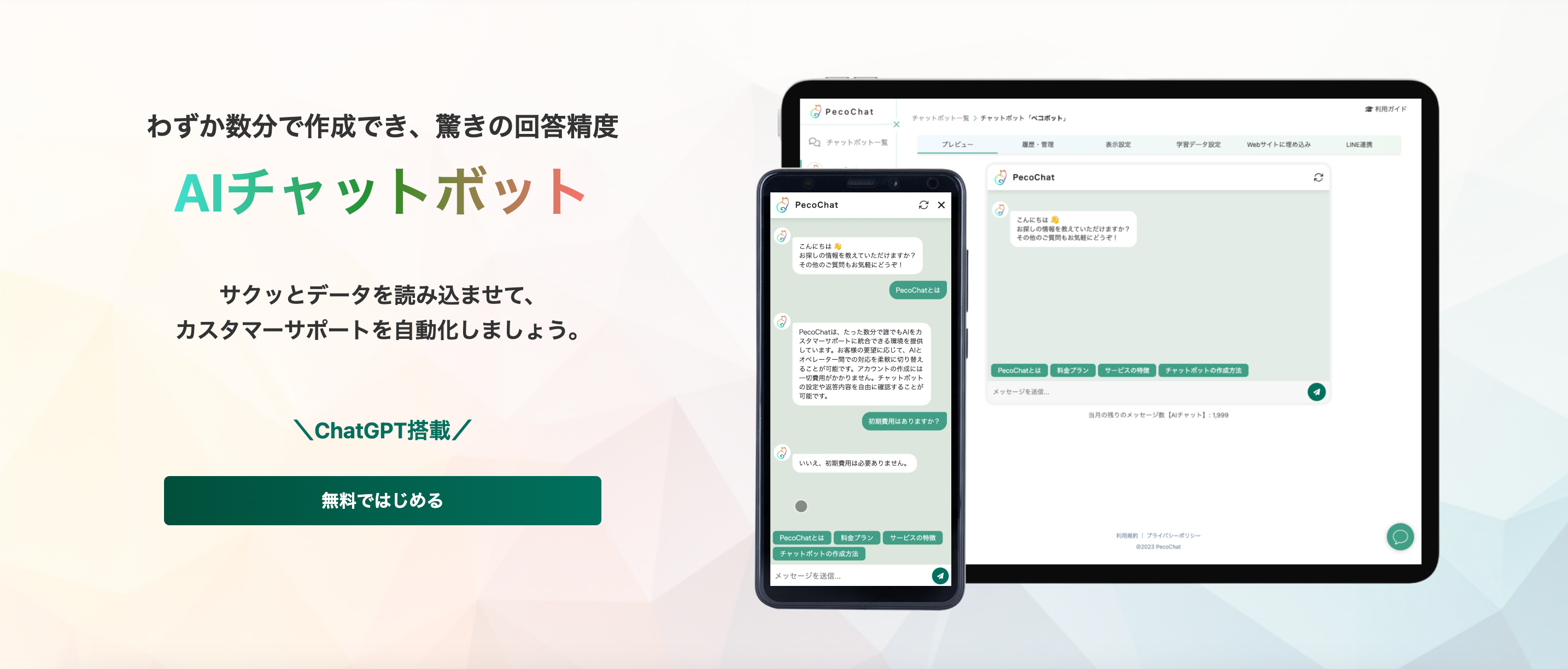 PecoChatは、高度なAI技術を駆使して、顧客からの問い合わせに即時かつ正確に対応します。これにより、企業は人件費を大幅に削減できます。