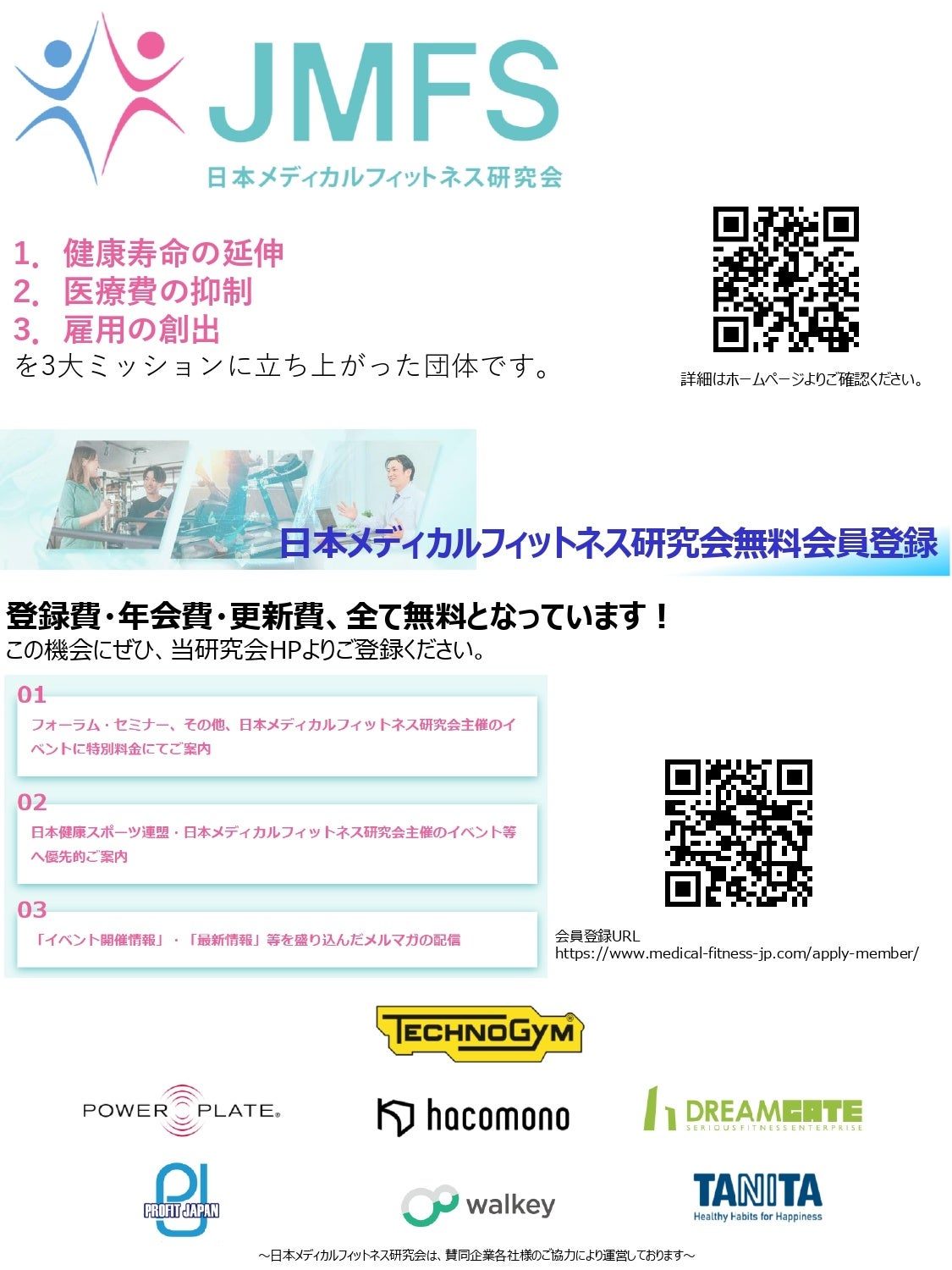 健康増進施設、指定運動療法施設、医療機関、42条施設、メディカルフィットネス、フィットネスクラブ、パーソナルジム、整骨院、治療院、公共運動施設等にご所属の方、健康運動指導士、健康運動実践指導者、その他運動指導者の方、ご興味のある方はどなたでもご参加いただけます。