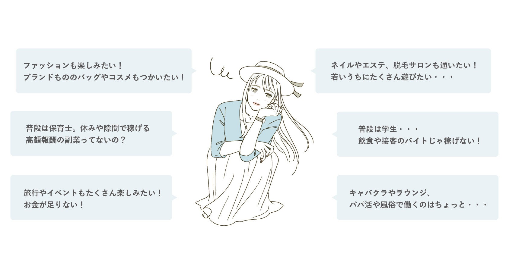 スケジュール登録したトーク枠にユーザーが申し込むことでトークがスタート。自分の働きたいときにおしゃべりをして高額報酬をゲット!スマホひとつでどこでも、いつでも利用することができます。