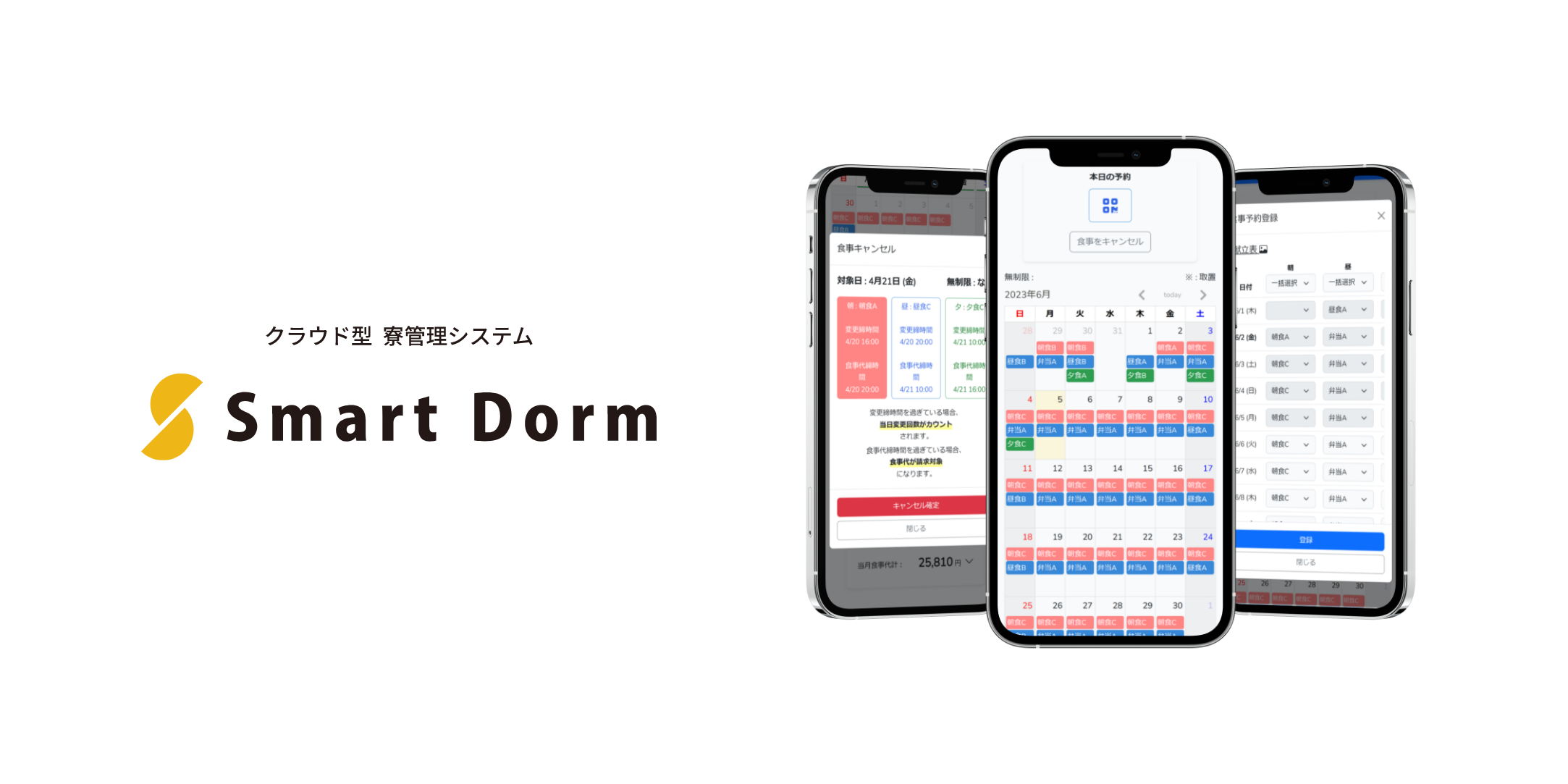 ・寮生ご自身のパソコンやスマートフォンからいつでも喫食予約、キャンセルが可能