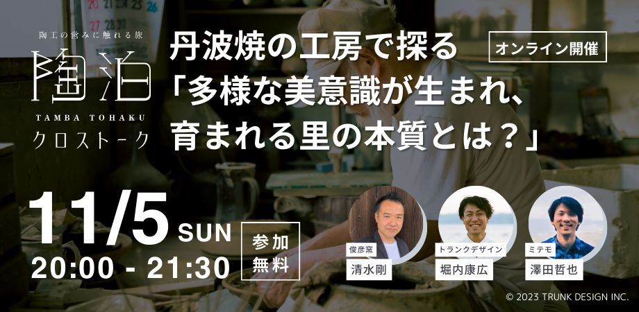 オンラインイベント【11/5 20:00-】陶泊クロストーク1:丹波焼の工房で探る「多様な美意識が生まれ、育まれる里の本質とは?」予約受付中!