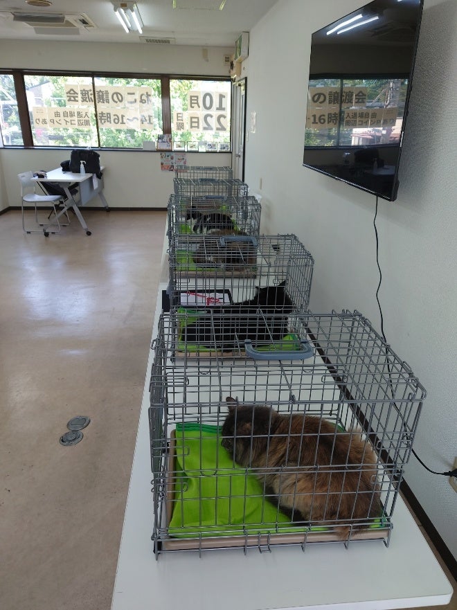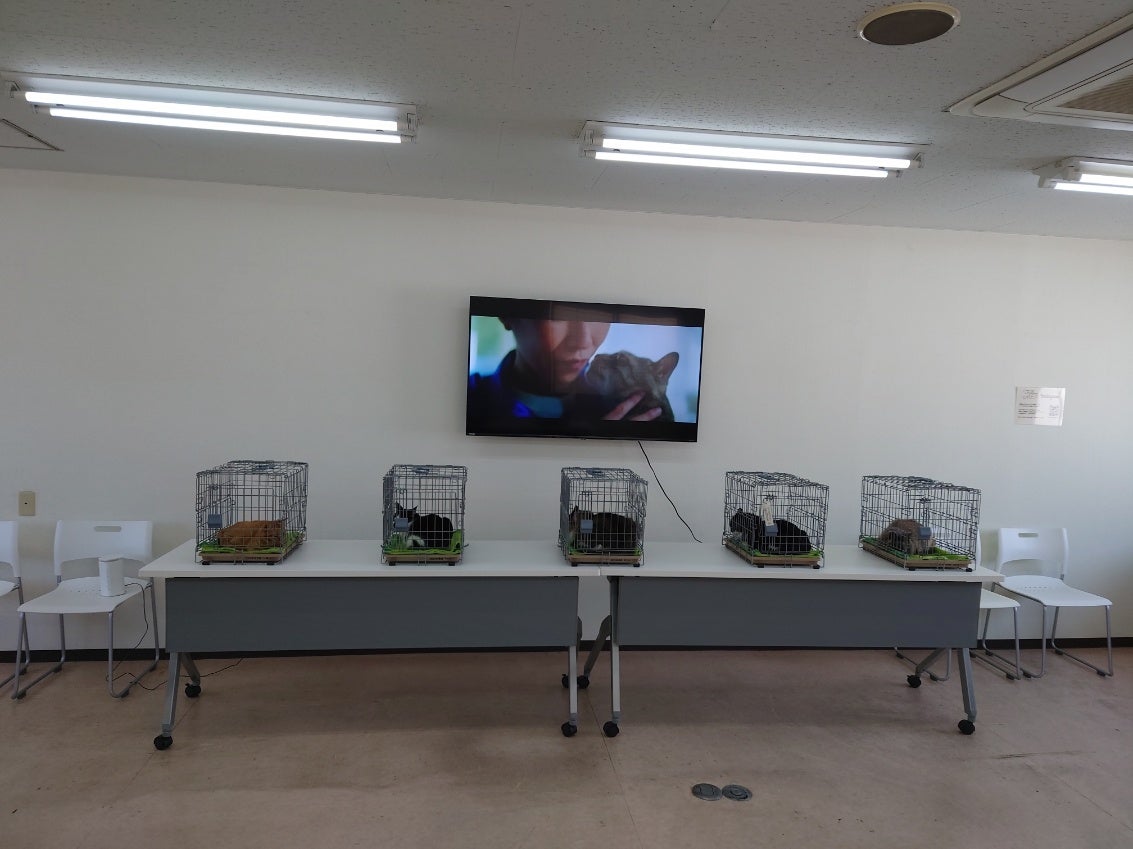 寄贈した4K液晶テレビは、譲渡会にお越しになる方々へ、DOTS MEOW MORIYAMの活動内容等の映像で放映して、しっかりと内容をお伝えしたいとの想いから選ばれて、今月の譲渡会から使われることになります。