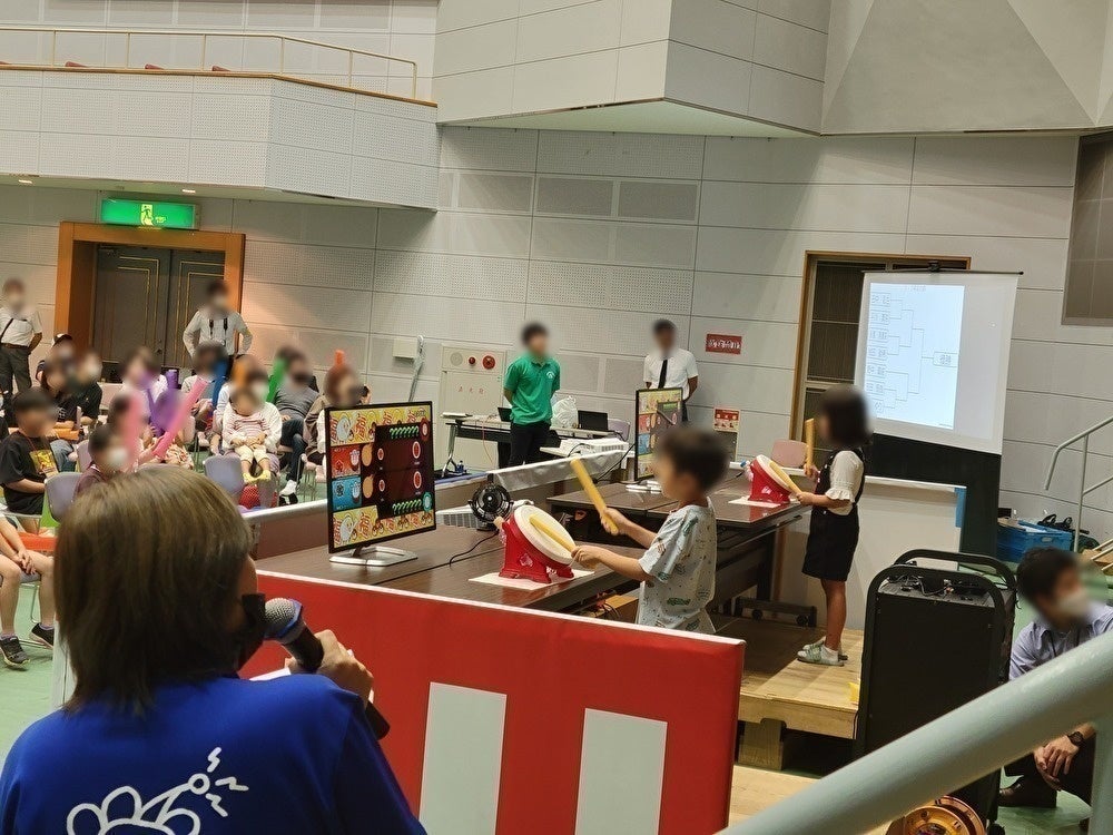 南島原市の各地区子ども会予選を勝ち抜いた小学生による「太鼓の達人 ドンダフルフェスティバル」を用いた決勝トーナメント戦を行いました。