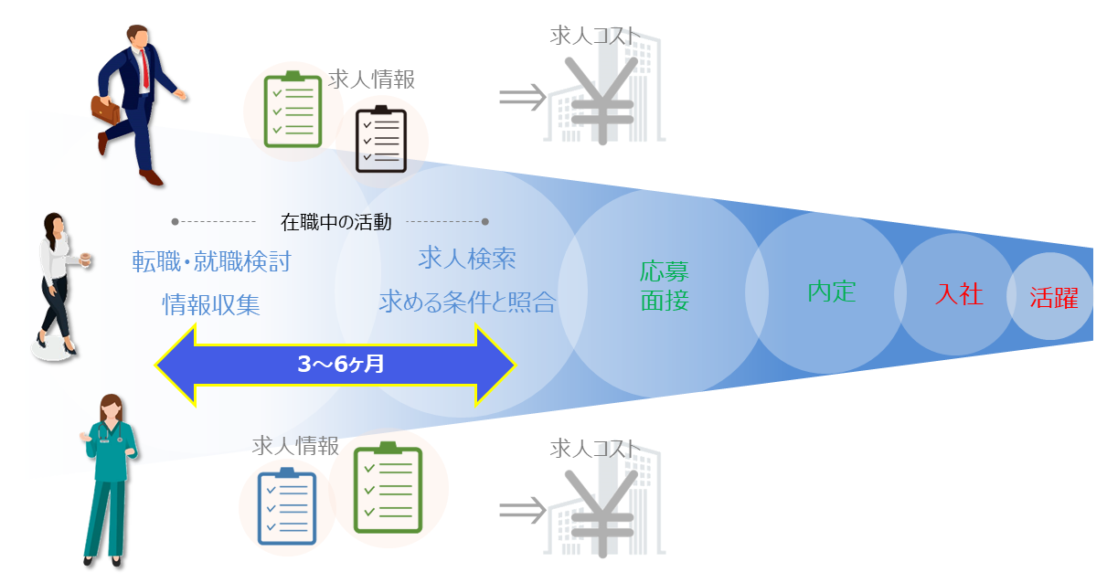 すぐに採用が必要な顕在的な求人はもちろん、将来的に「いい人材がいれば採用したい」という潜在的な求人も掲載可能です。多様な求職ニーズに応えることができるため、多くの求職者の集客が可能となります。
