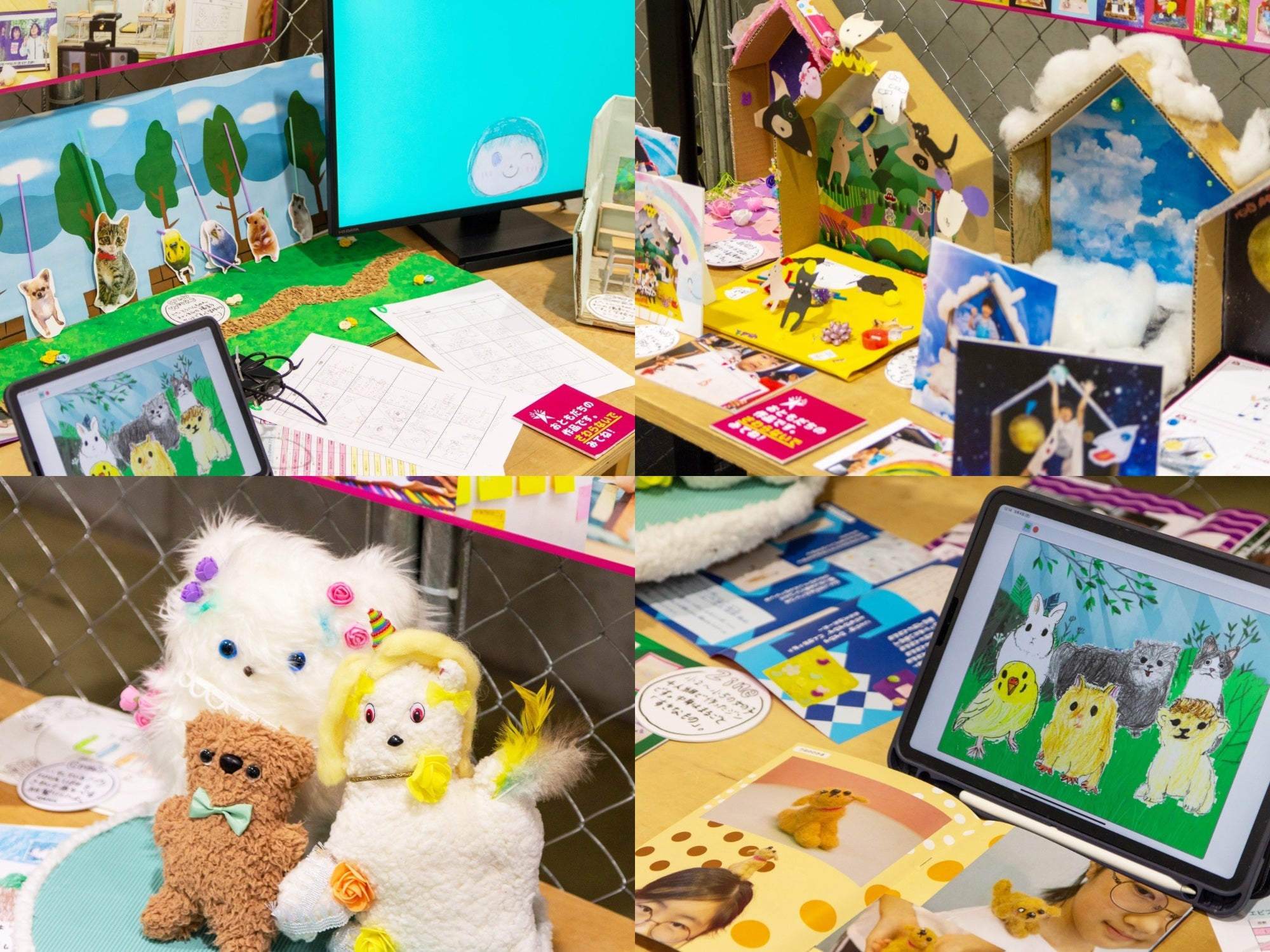 在籍している子どもたちは、作品の構想、物語の設定から、様々な素材を使った制作、最後のプレゼンテーションまで自分の力でやり遂げます。内容は、イラスト・工作・ぬいぐるみ・アニメーション・YouTube・NFTアートなどさまざま。自分たちの作りたいものを、工夫しながら形にすることで想像力や技術力はもとより、自己信頼感を育みます。