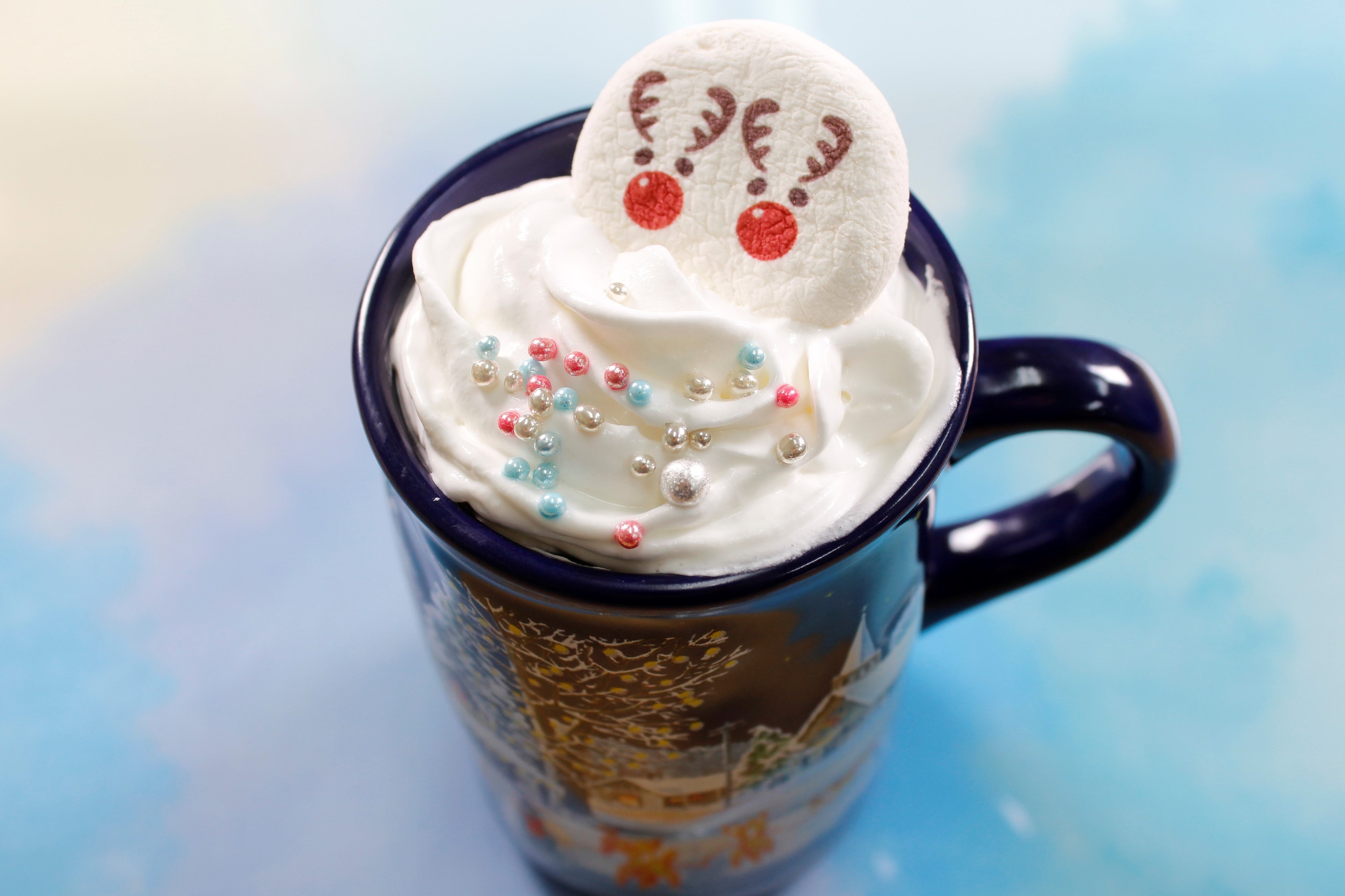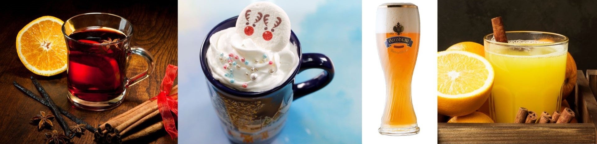 体の芯から温まるグリューワイン(スパイス入りホットワイン)を大阪クリスマスマーケット「オリジナルマグカップ」で提供。またドイツビールやホットココアをはじめ、ソーセージやスープなども販売します。