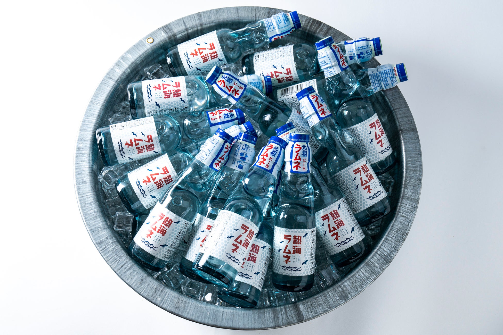 熱海ラムネは夏だけの商品ではない。熱海ラムネは湯上りマストな飲料。食事シーンに溶け込む、かわいい熱海の新名物です。熱海市内の飲食店やお土産で購入できる地域限定で販売中です。