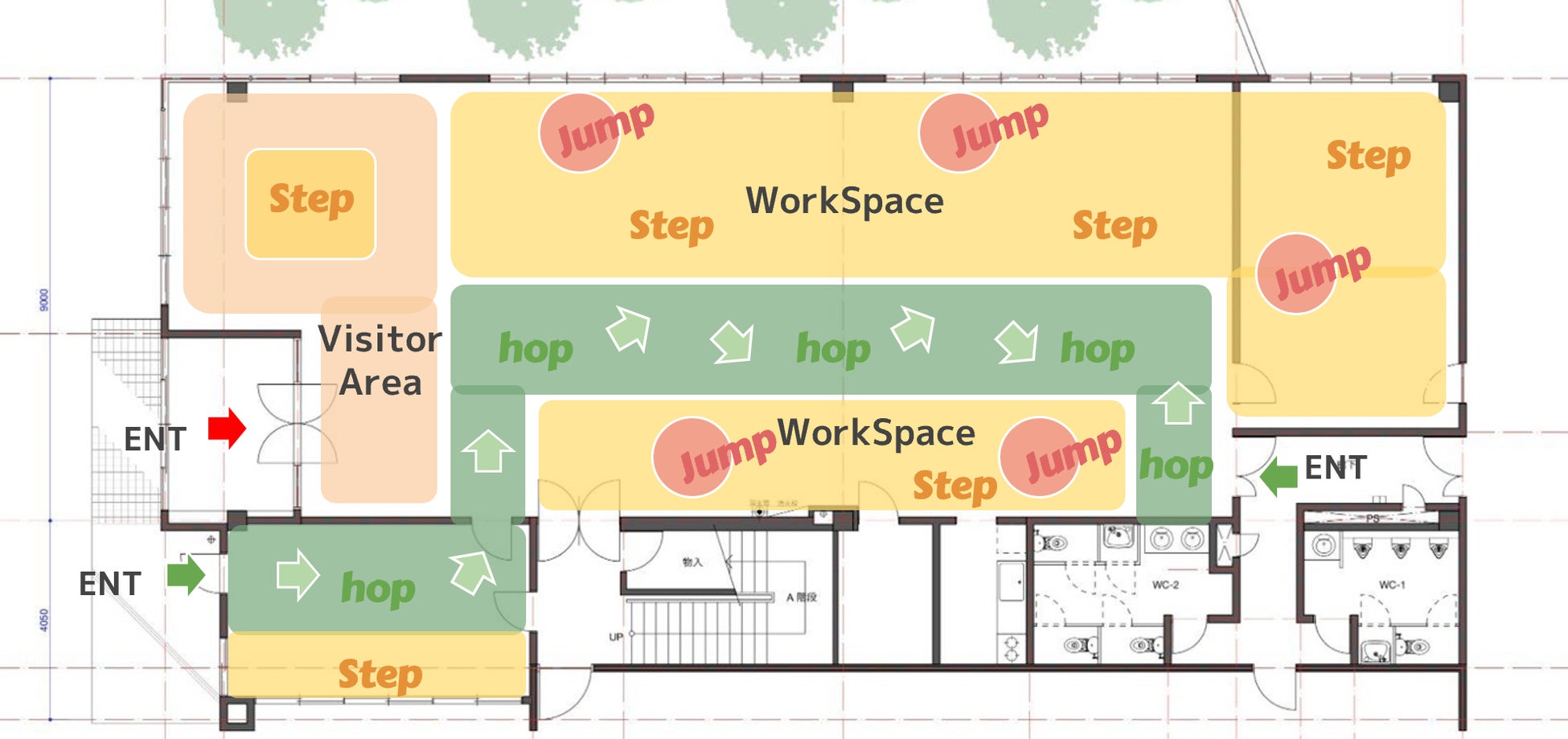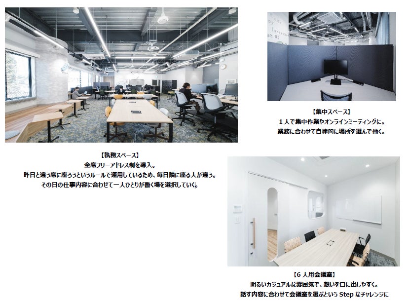 オフィスコンセプトを「大きなジャンプにつながる、小さな成功体験を積み重ねられるオフィス」とし、小さなチャレンジを支え育てていく3つのゾーニングを構築しました。