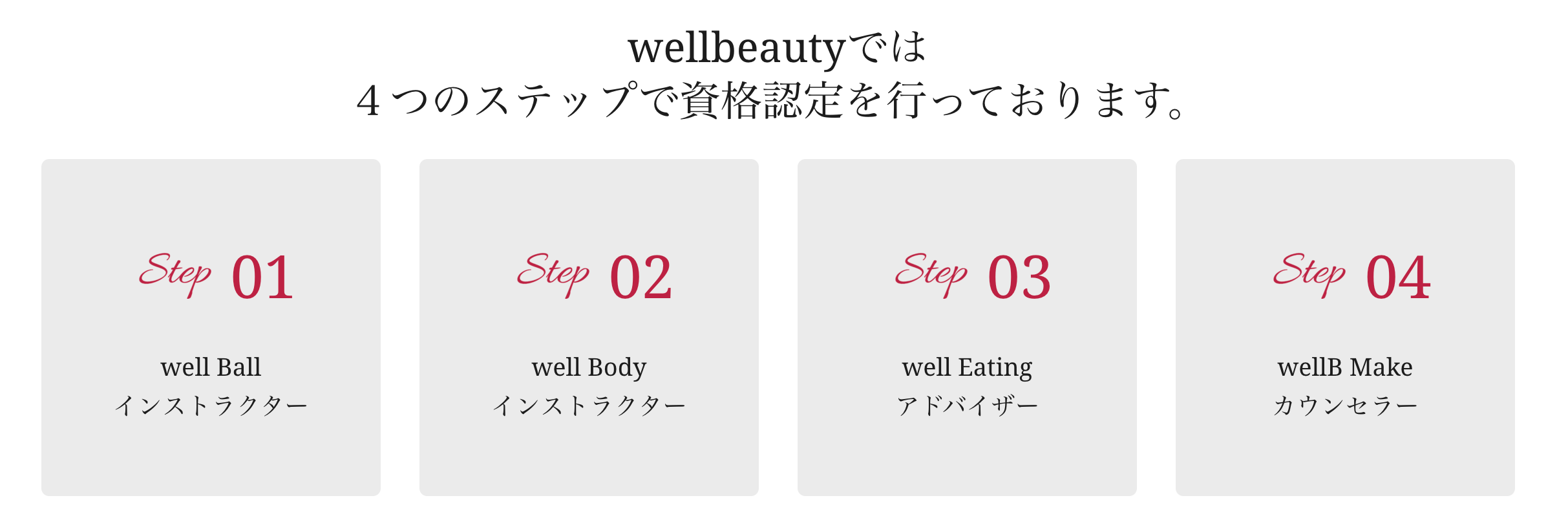 Step4 wellB Makeインストラクター:Step1-3を理解し、十人十色の体と心、ライフスタイルを持つ生徒さんたちをカウンセリングする手法を習得します。