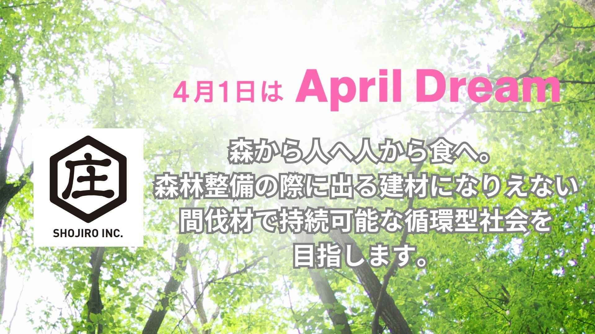 当社は、4月1日を夢を発信する日にしようとするApril Dreamに賛同しています。 このプレスリリースは「株式会社庄治郎商会」の夢です。