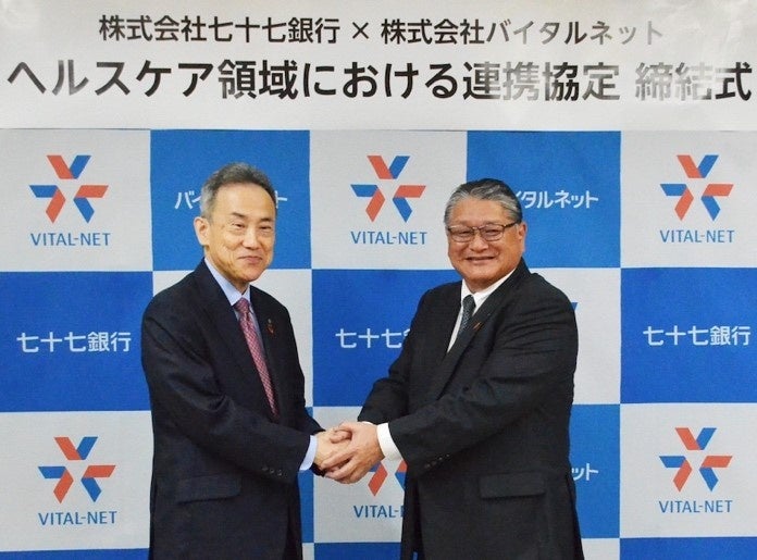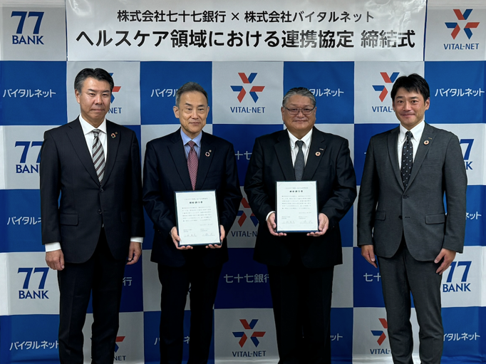 【バイタルネット】七十七銀行とヘルスケア領域の持続的な成長支援を目的とした包括連携協定書を締結