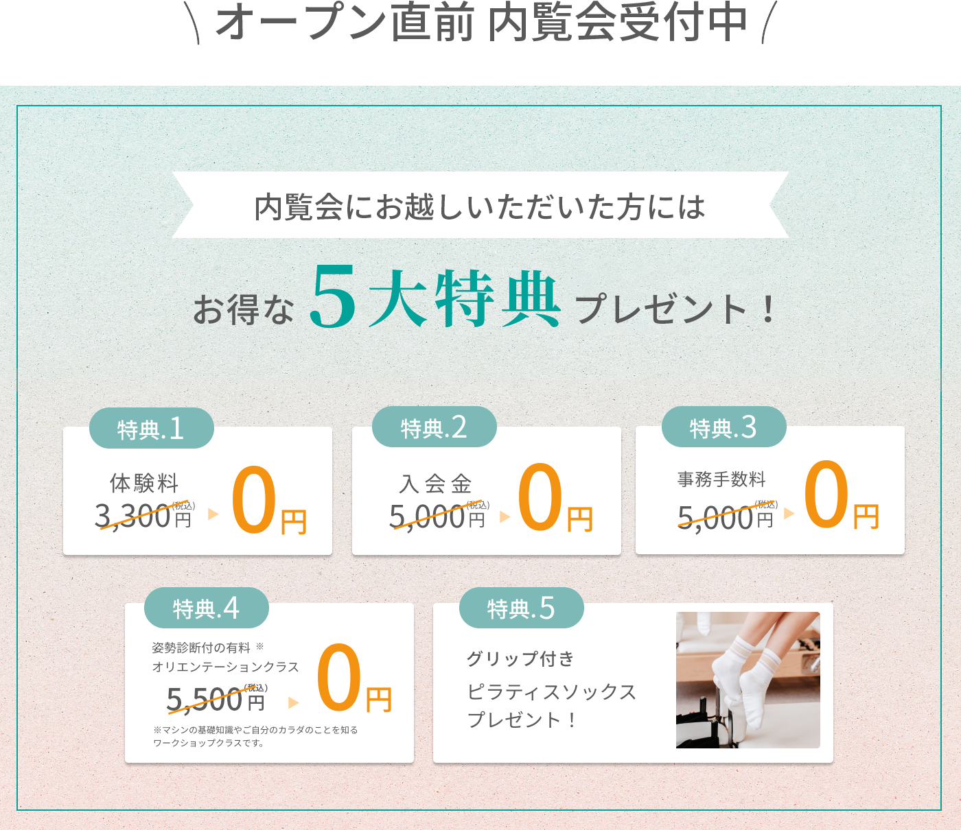 ご入会にあたり5大特典をご用意してお待ちしております。