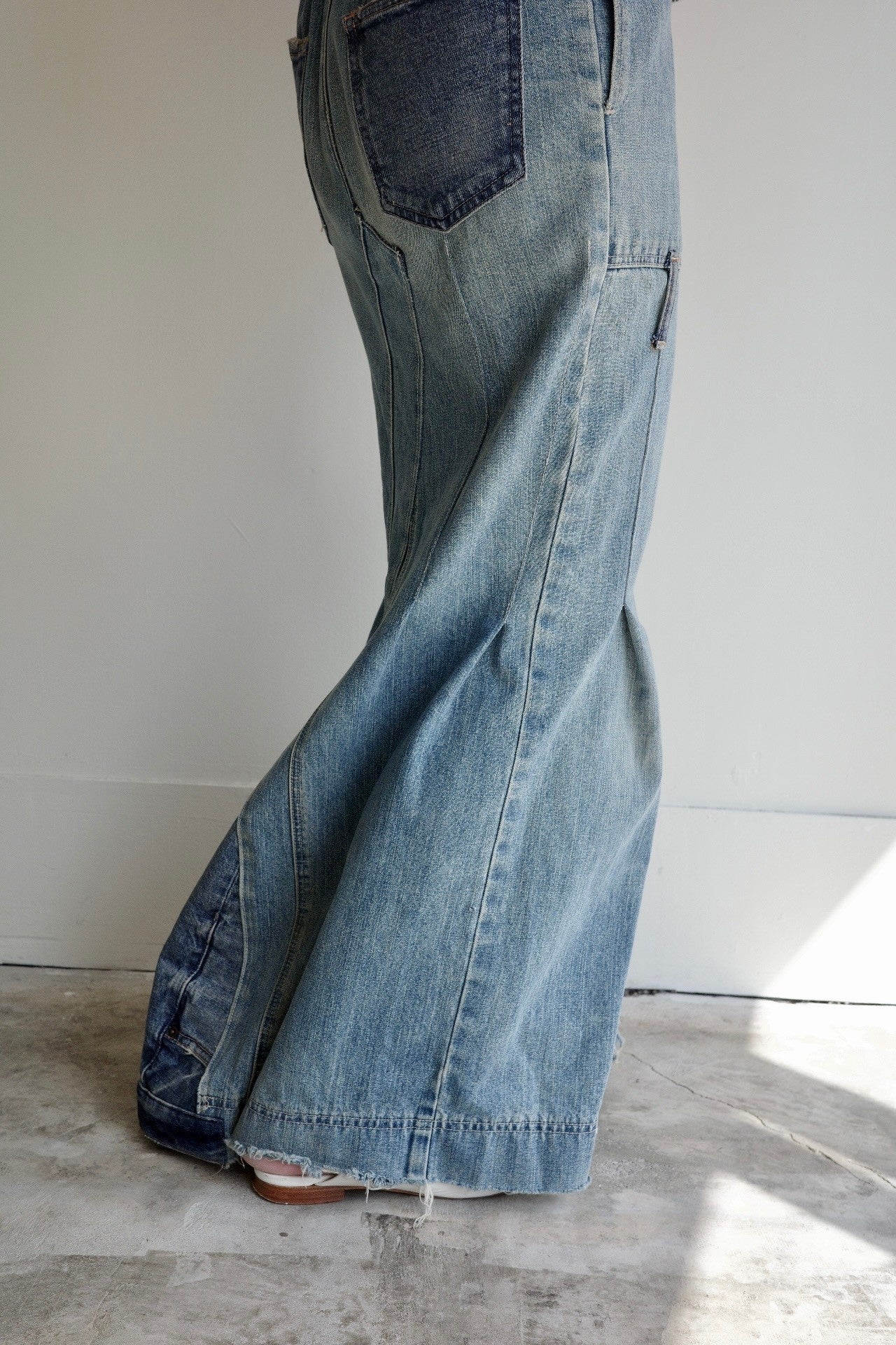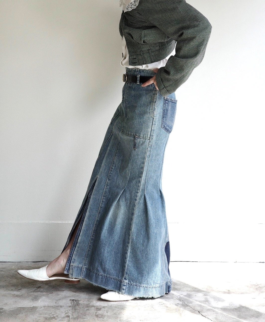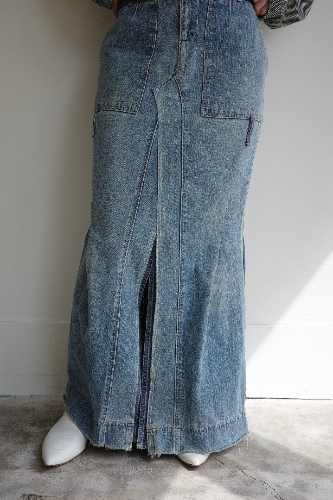 Denim Skirt ¥36,300-(税込) 日本のデニムパンツを解体したデニムスカート。違う色落ちの デニムを組み合わせることでコントラストを出しています。