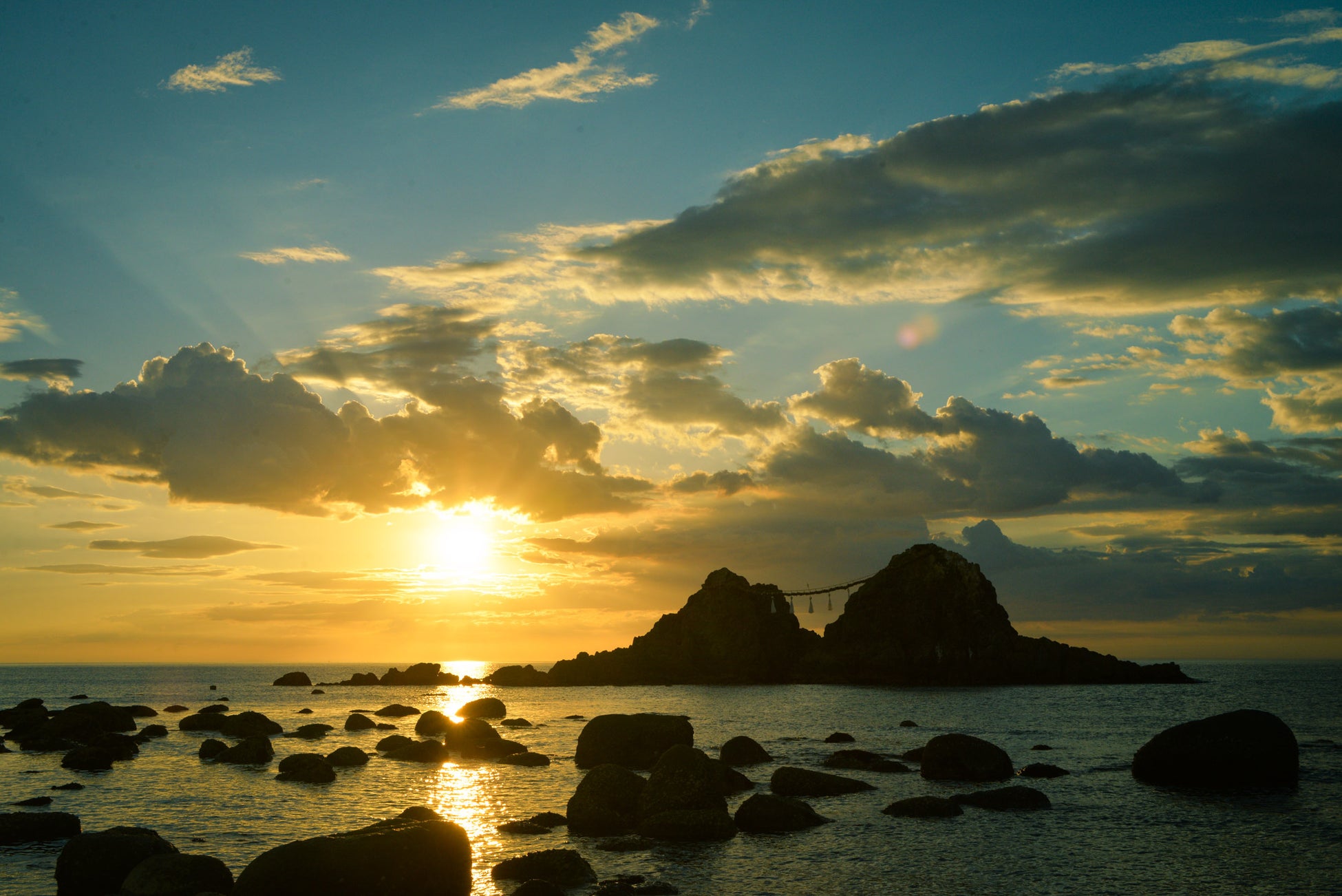 アクセス:博多駅から昭和バス(ウエストコーストライナー)に乗車、もしくはJR九大学研都市駅より昭和バス(西の浦線)に乗車⇒バス停「二見ヶ浦(夫婦岩前)」より徒歩1分