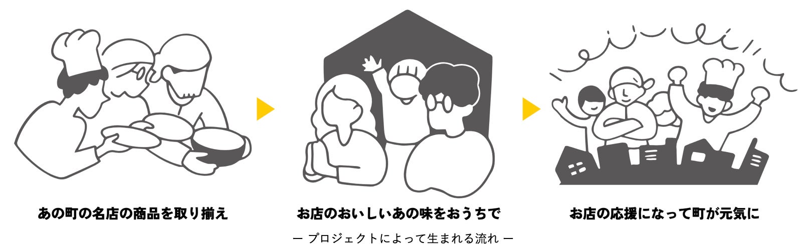 本来はお店に訪れることでしか召し上がっていただけない、「お店自信の一品」を冷凍加工し、オンラインショップにて販売することでお店の収益・宣伝に繋げます。それがまちの食文化を守り、宣伝にも寄与する。そしていつか実際の商品を食べにこのまちに足を運んでいただけるきっかけをつくります。