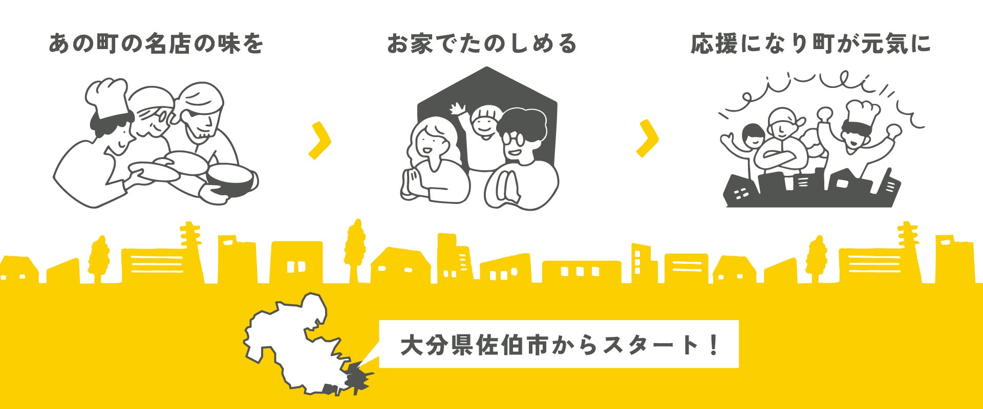 オンラインショップを通じて、大分県佐伯市の地元飲食店とお客様を繋ぐことによって、新たな街の魅力を発信し、これまでにはない角度で町おこしにつなげる試みです。