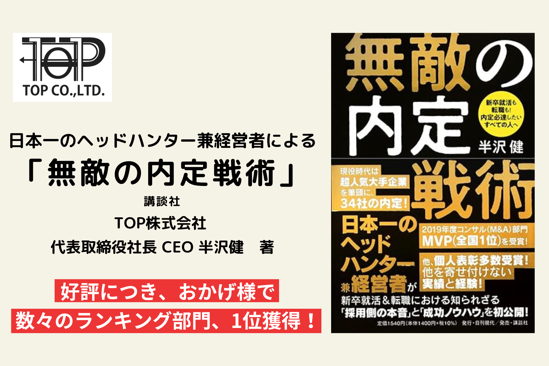 【新卒就活も転職も!内定必達したいすべての人へ】日本一のヘッドハンター兼経営者、半沢健の著書「無敵の内定戦術」が話題!