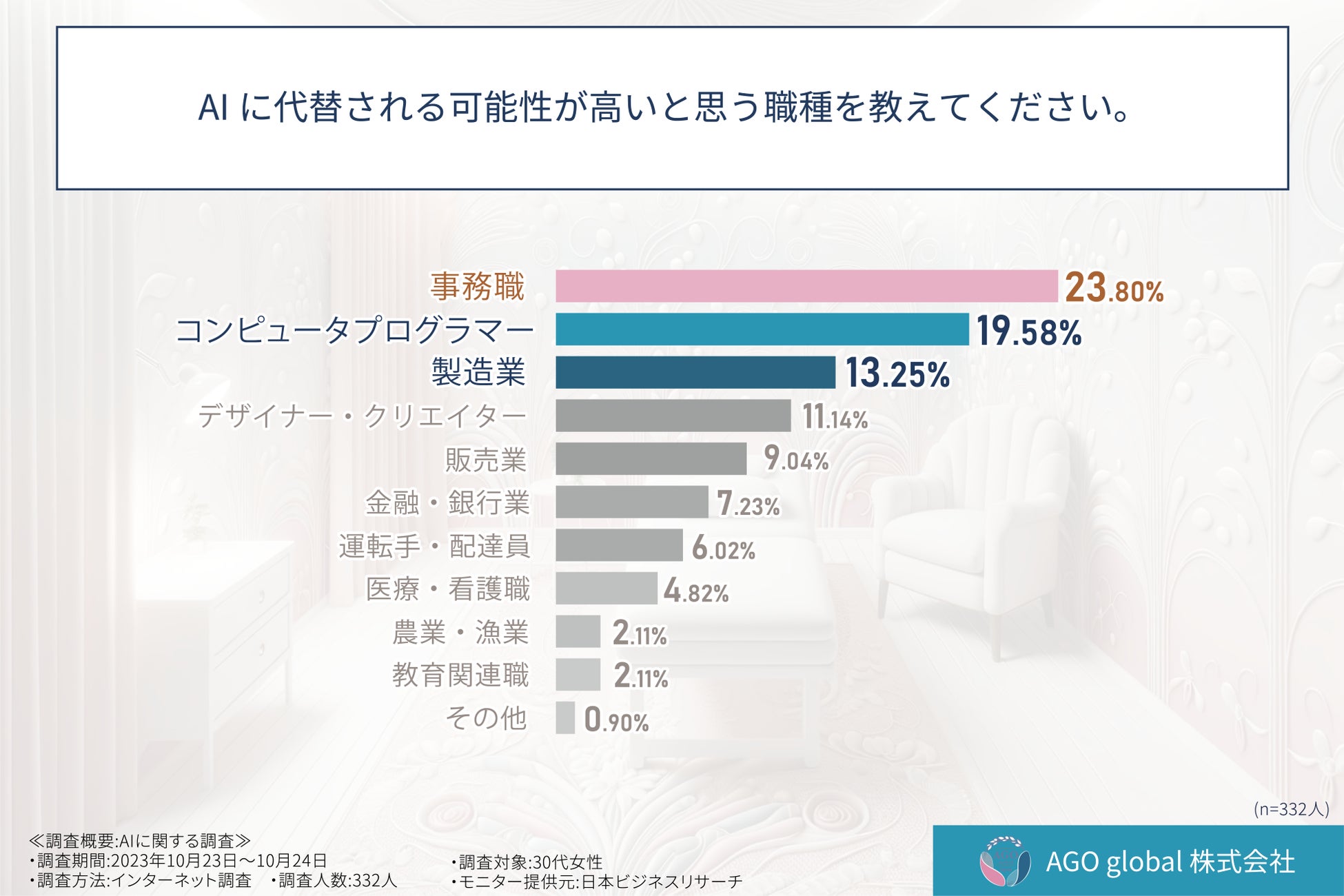 「AIに仕事が奪われると考えている人は◯◯%!?」30代女性332人を対象に意識調査を実施!