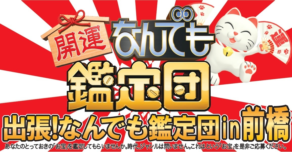 テレビ東京の長寿番組「開運なんでも鑑定団」の人気コーナー「出張!なんでも鑑定団」が12月23日(土)に大胡シャンテマルエホールにて行われます。あなたのとっておきのお宝を募集します。