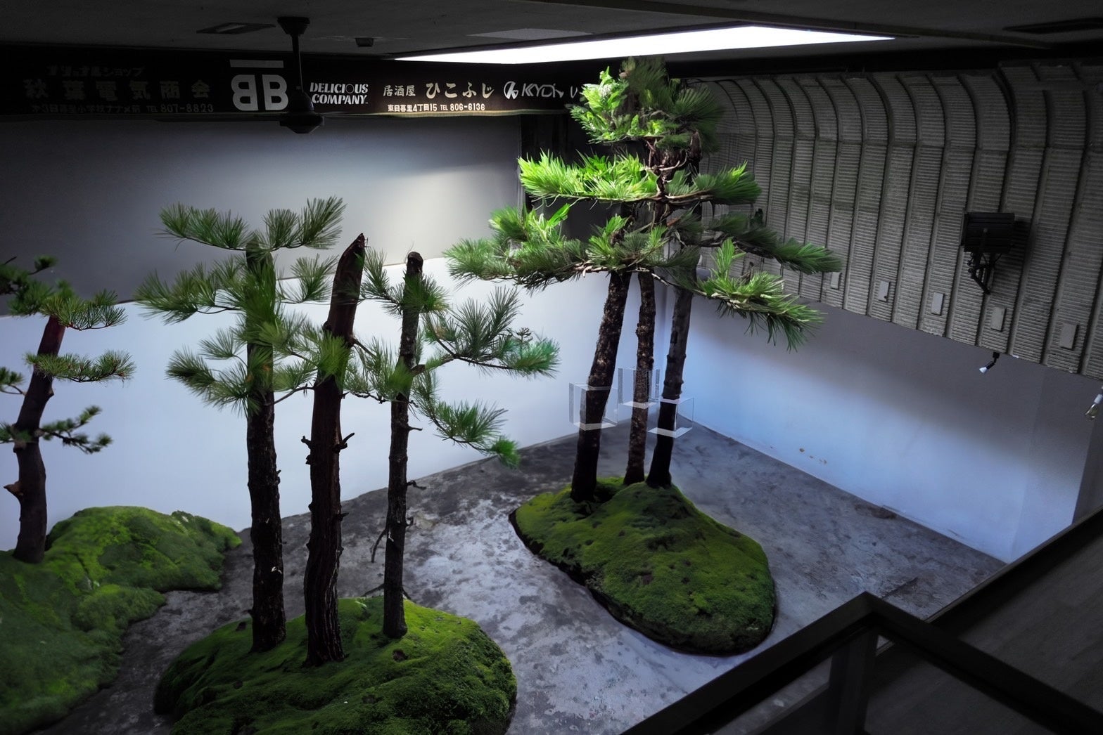 《赤松之森》本展示メインとなる赤松で構成される森林インスタレーション。元映画館内に長野県の森をそのまま持ち込む。