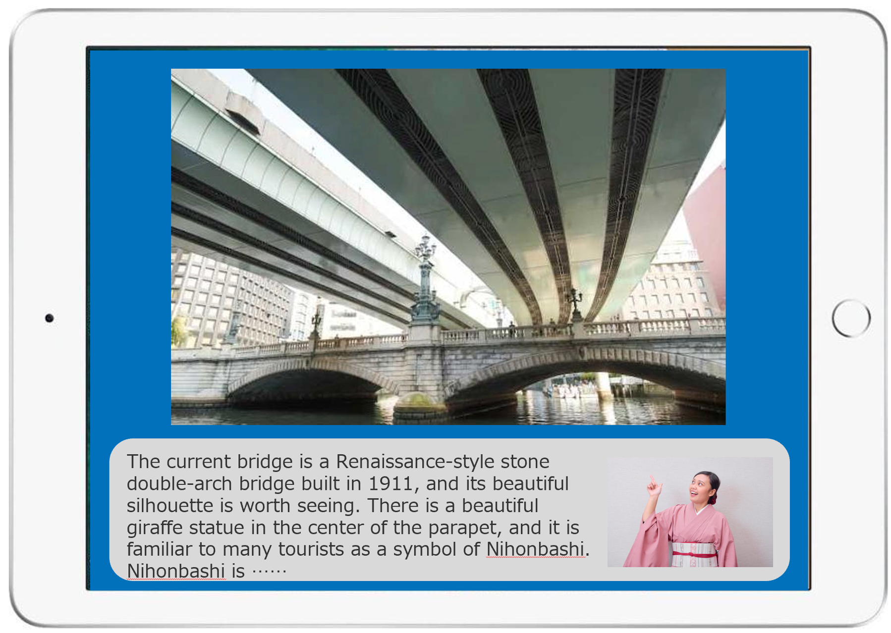 日本橋から船に乗りに来ていただいたお客様は、船に乗りに来ることのみが目的となっている方が多数を占めており、乗船前や乗船後に日本橋の観光などを行いたい希望はあるものの何処へ行ったら分からないという声が多数寄せられていました。そのため、水辺と街を結ぶ仕掛けを日本人向けに企画して参りましたがこの度、少しづつ増えてきた外国人旅行者が東京日本橋訪れる中、初めて日本橋を訪れる方や日本橋をより深く知りたいという方に日本橋の魅力を訴求するとともに旅の満足度向上に繋げたいと考え、外国人旅行者向けサービスを新たにに実施する運びとなりました。