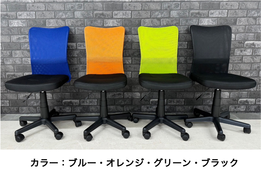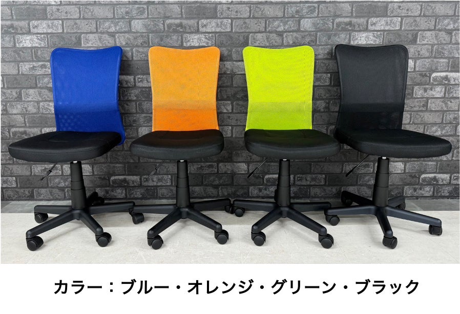 座面昇降機能付きで、好きな高さに調整可能。通気性の良いメッシュ素材で1年間快適に使用できます。