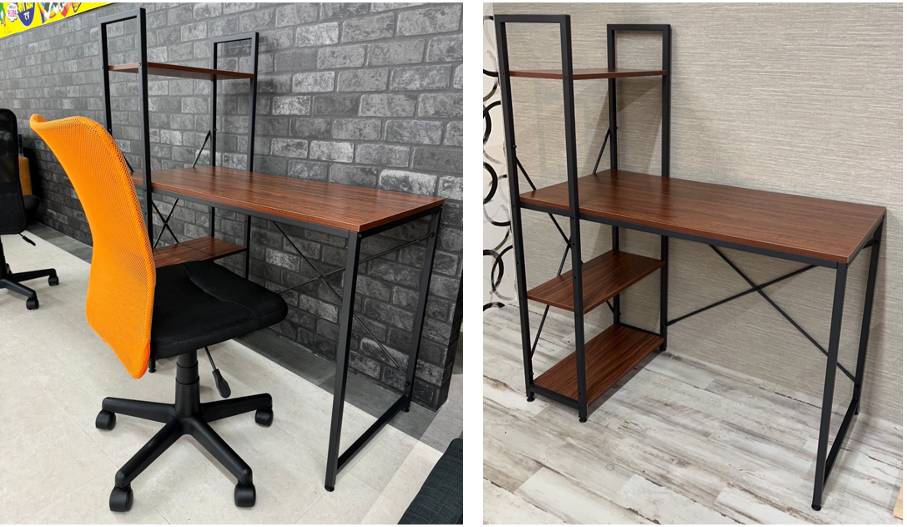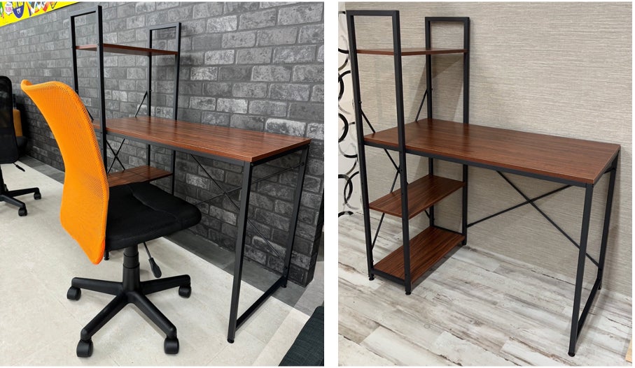 棚板とスチールフレームを組み合わせたシンプルなデザインのデスク。
