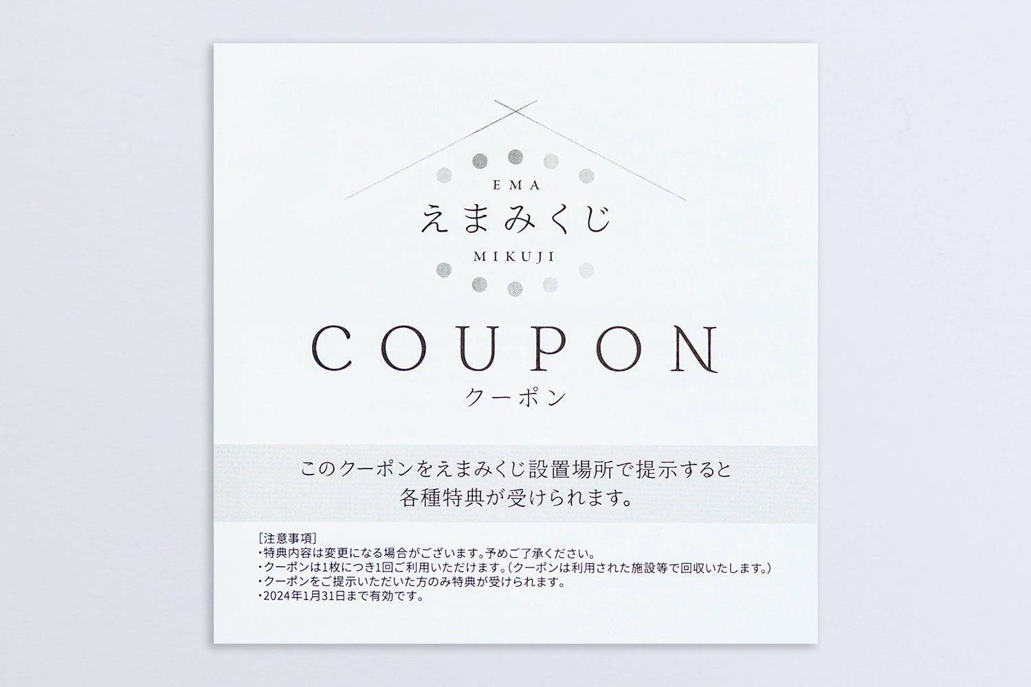 えまみくじの設置施設で掲示すると特典が受けられるクーポンも同封されています。