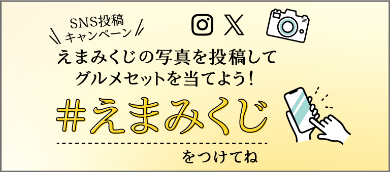 ②あなたが撮影した“えまみくじ”の写真を『#えまみくじ 』をつけてInstagramかXで投稿してください。