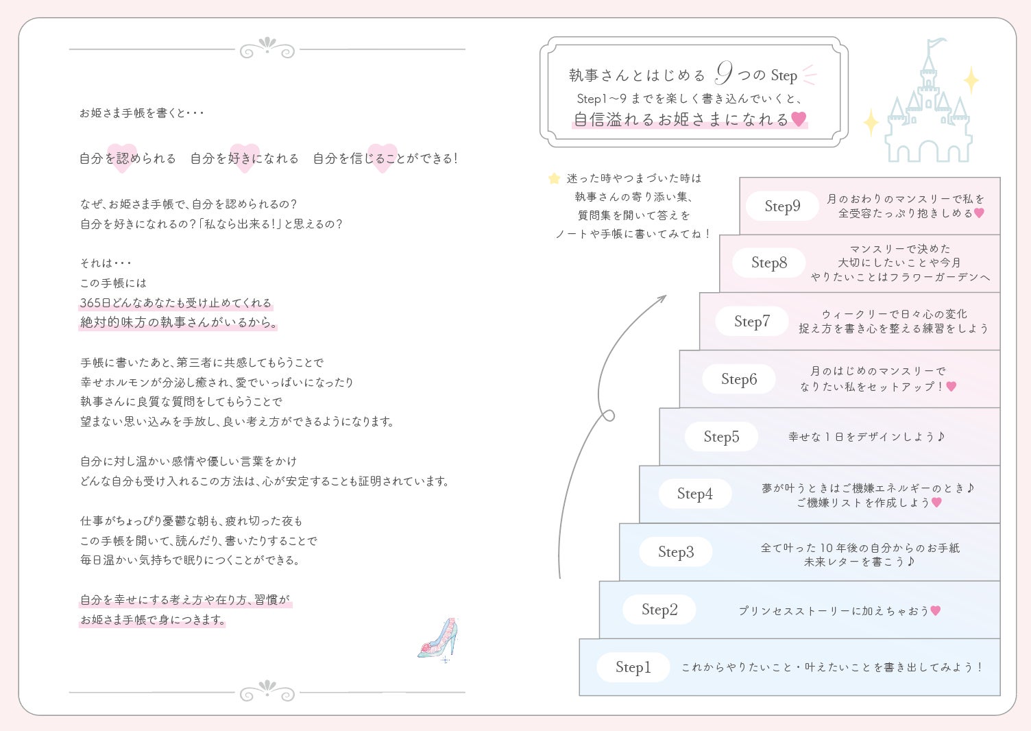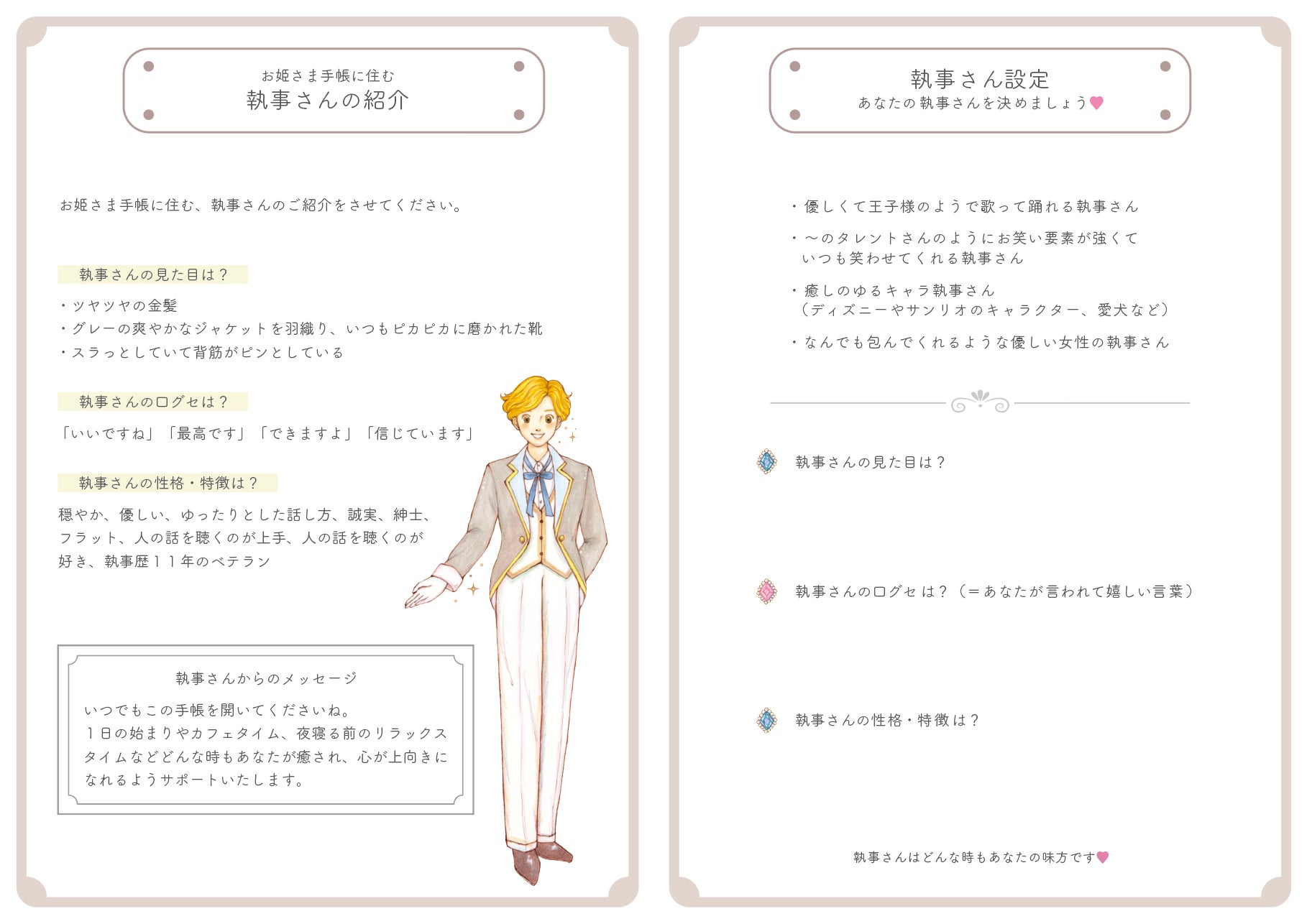 『執事手帳』ユーザーさま500人の方を対象としたアンケートでいただいたお声を参考にさせていただきながら制作を行い、『お姫さま手帳』としてバージョンアップしました。
