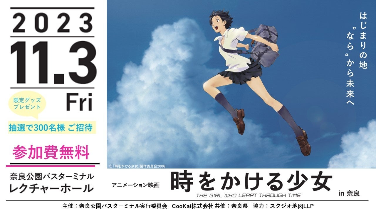 古都であり日本のはじまりの地である“なら”から、タイムリープ(時間移動)をテーマにした人気作品を上映するとともに、未来を描くときかけワークショップを併催することで、歴史と未来をつないでいきます。